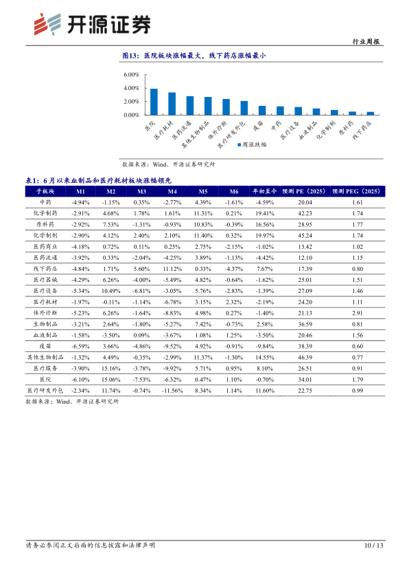 本节分析了6月第4周医药生物板块的整体行情以及各子板块的表现。