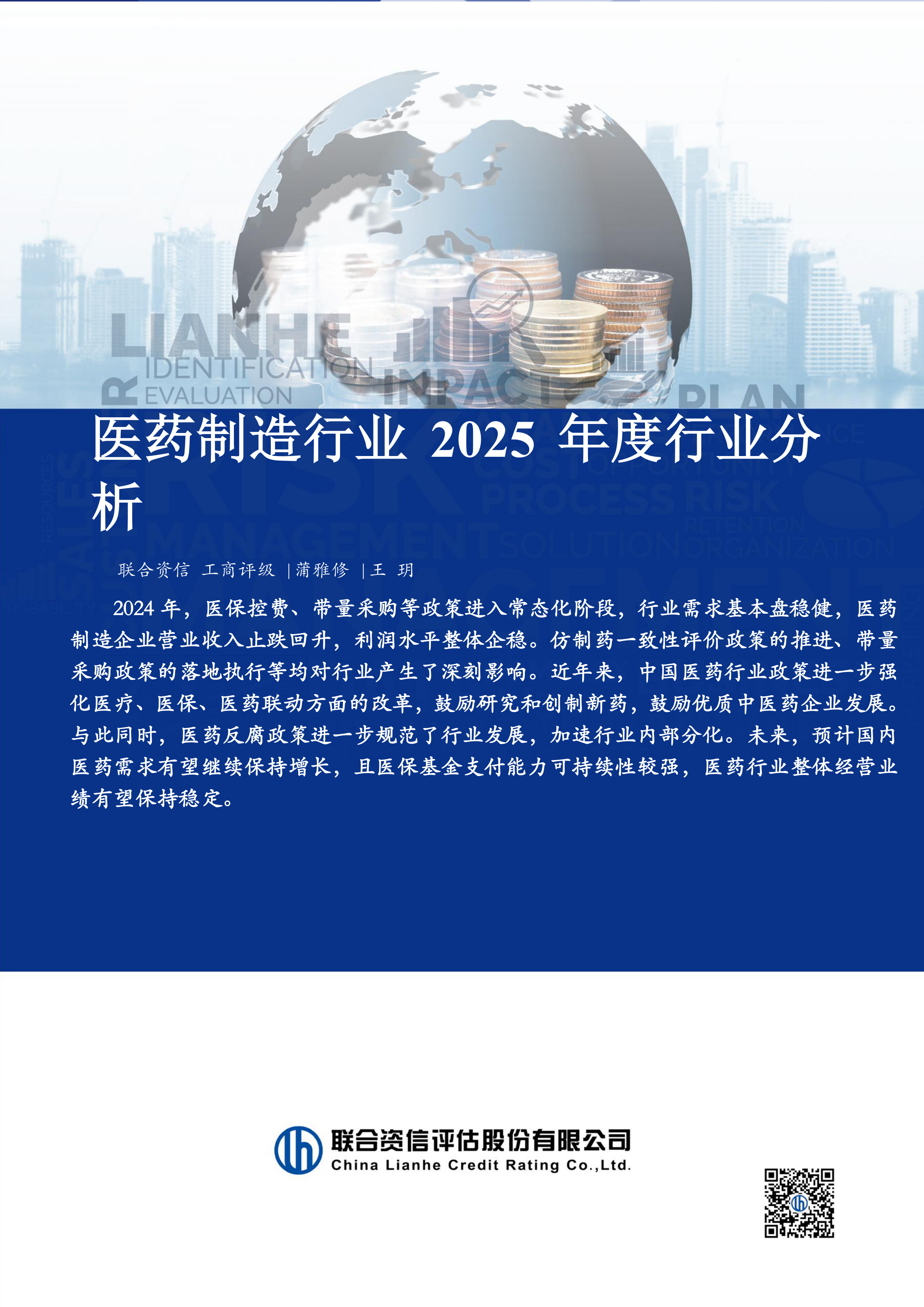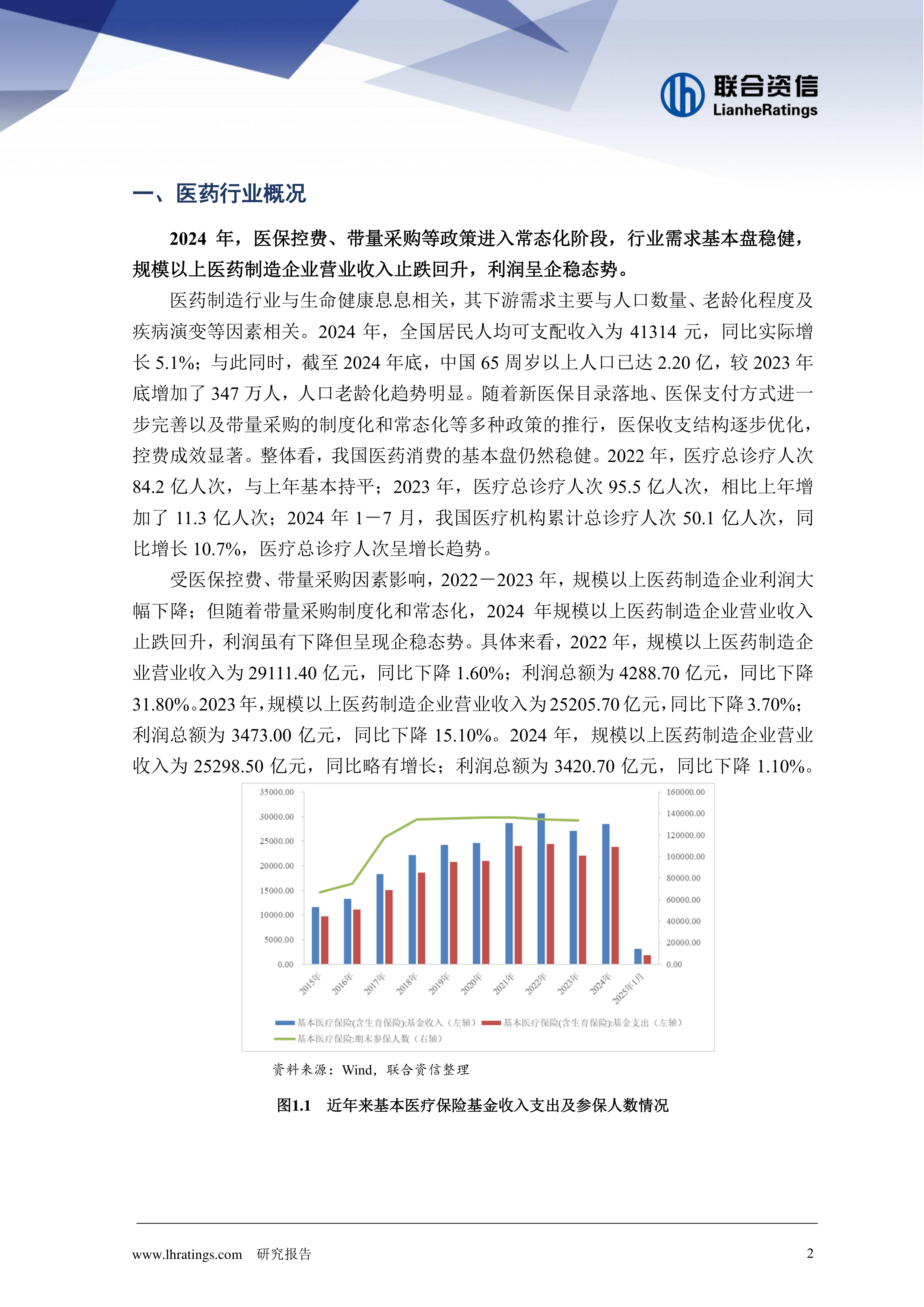 2024年,医保控费、带量采购等政策进入常态化阶段,行业需求基本盘稳健,医药制造企业营业收入止跌回升,利润水平整体企稳。仿制药一致性评价政策的推进、带量采购政策的落地执行等均对行业产生了深刻影响。近年来,中国医药行业政策进一步强化医疗、医保、医药联动方面的改革,鼓励研究和创制新药,鼓励优质中医药企业发展。与此同时,医药反腐政策进一步规范了行业发展,加速行业内部分化。未来,预计国内医药需求有望继续保持增长,且医保基金支付能力可持续性较强,医药行业整体经营业绩有望保持稳定。