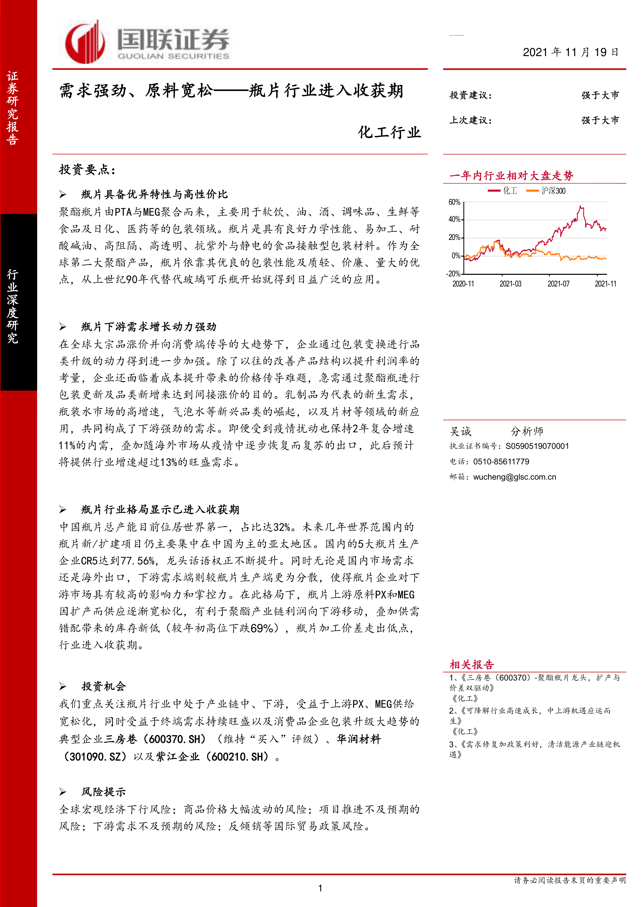 化工行业:需求强劲、原料宽松——瓶片行业进入收获期