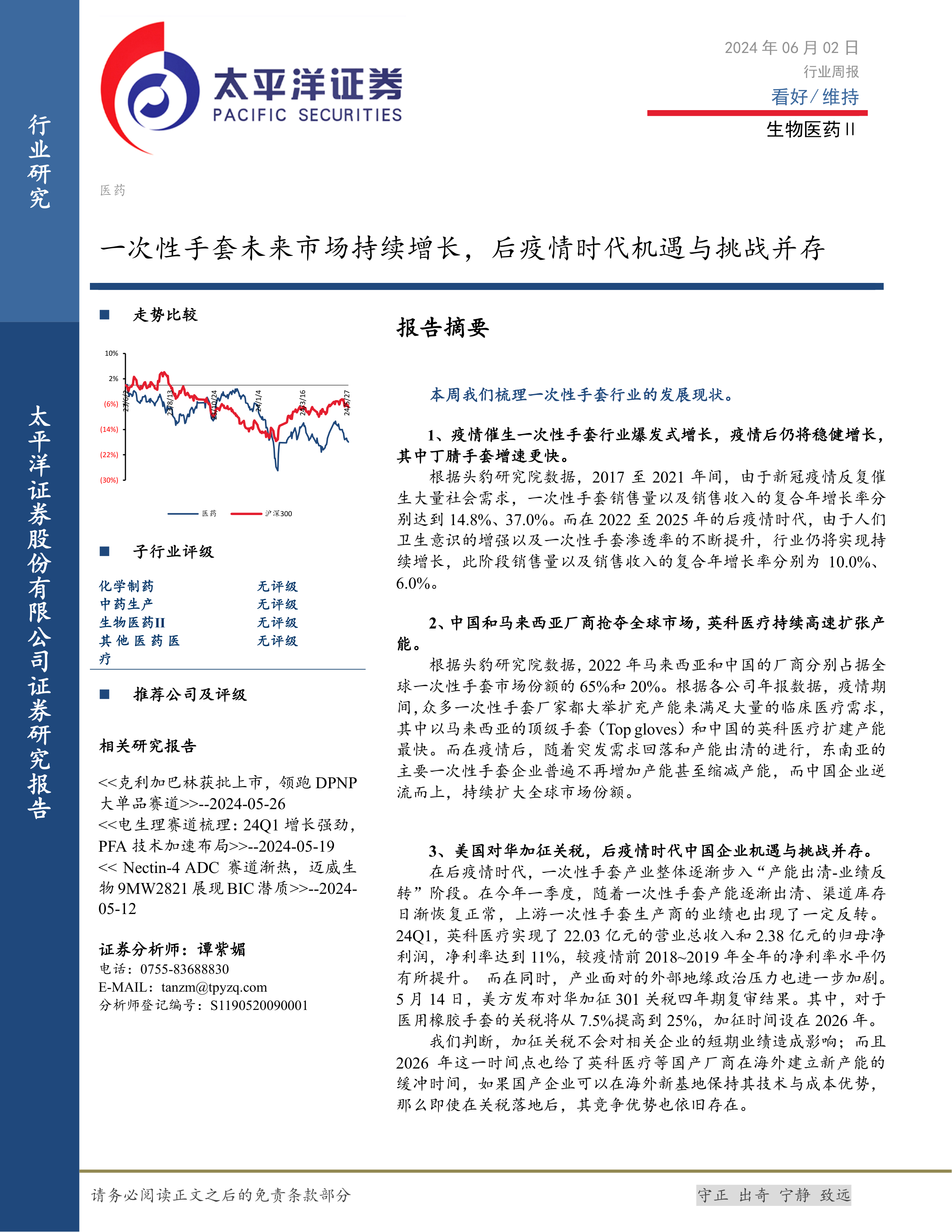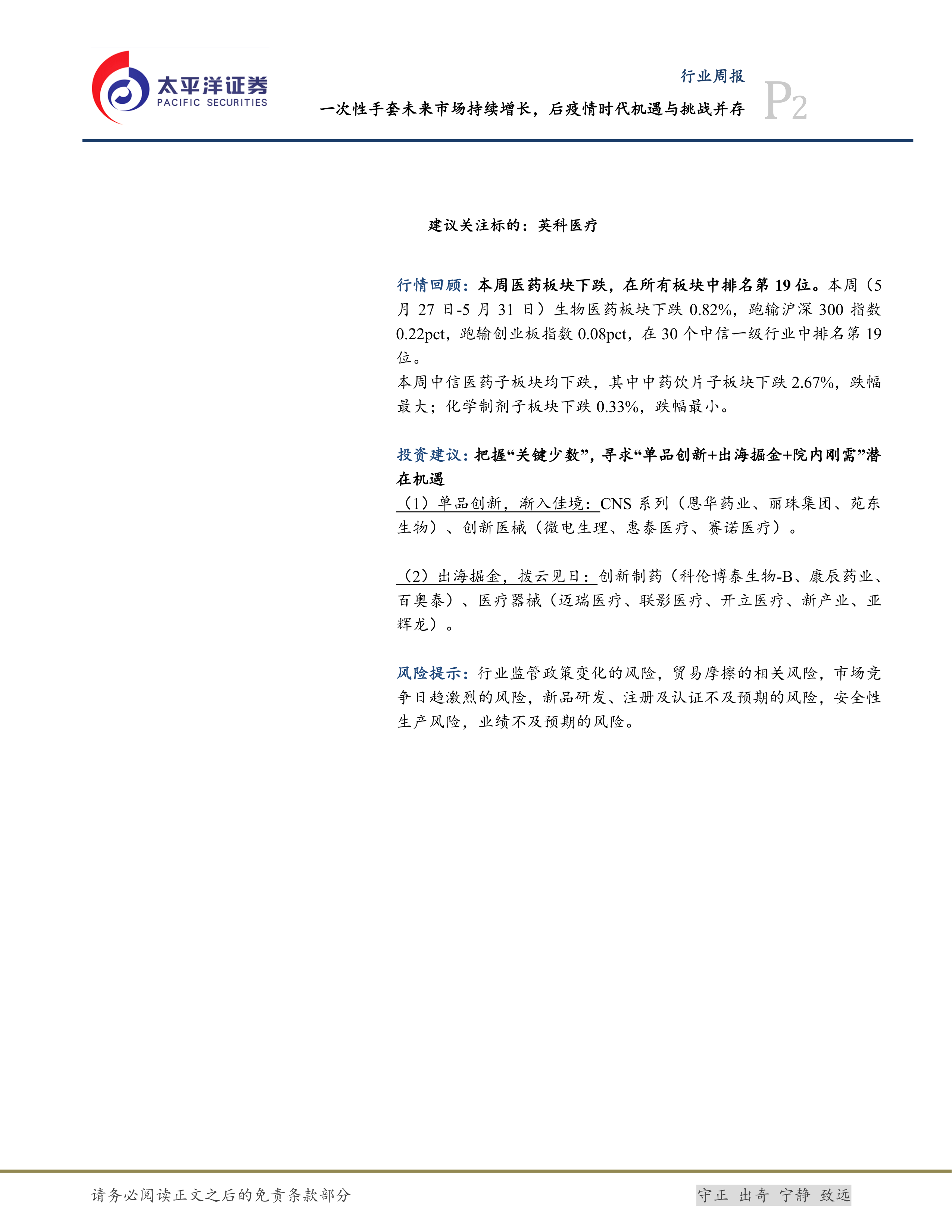 生物医药Ⅱ行业周报:一次性手套未来市场持续增长,后疫情时代机遇与挑战并存