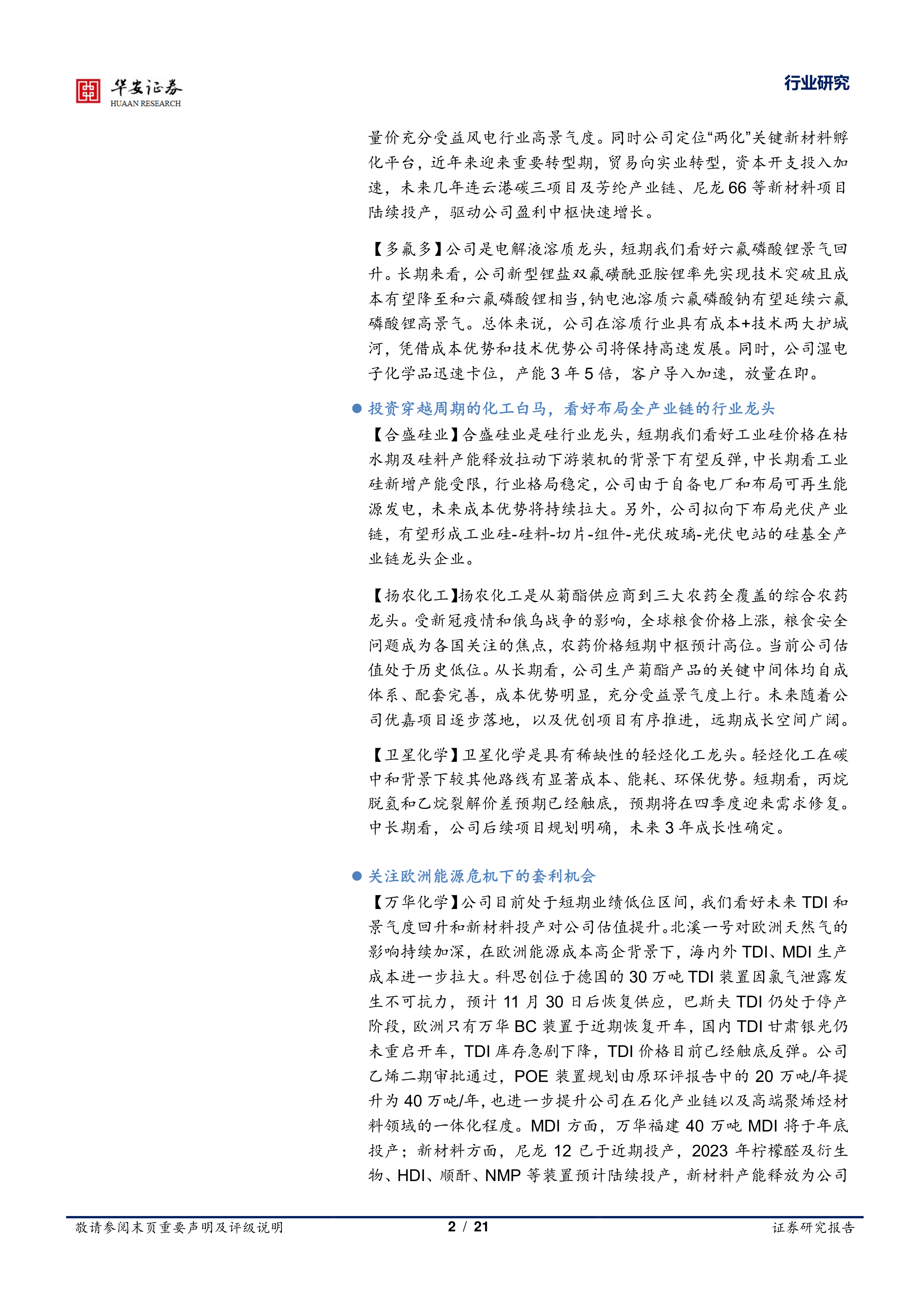 二是投资穿越周期的化工白马,看好布局全产业链的行业龙头。