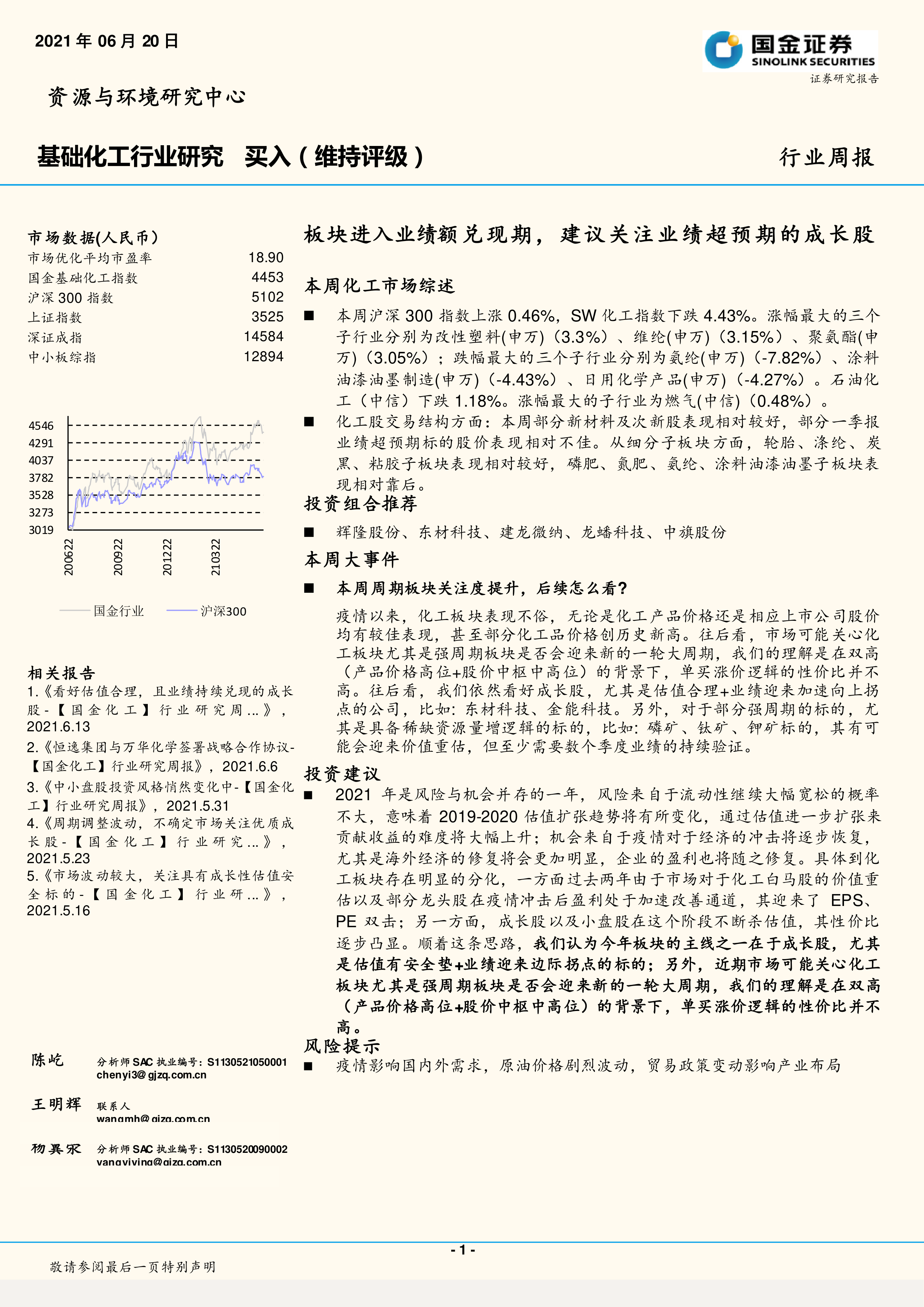 本报告对2021年6月基础化工行业进行了全面分析,涵盖了市场回顾、子行业跟踪、重要事件以及投资建议等方面。报告指出,行业内部存在明显分化,风险与机遇并存。 建议投资者关注估值合理、业绩持续兑现的成长股,以及具备稀缺资源量增逻辑的强周期标的,但需谨慎评估风险,并密切关注市场变化和政策调整。 报告提供了丰富的市场数据和图表,为投资者提供了有价值的参考信息。