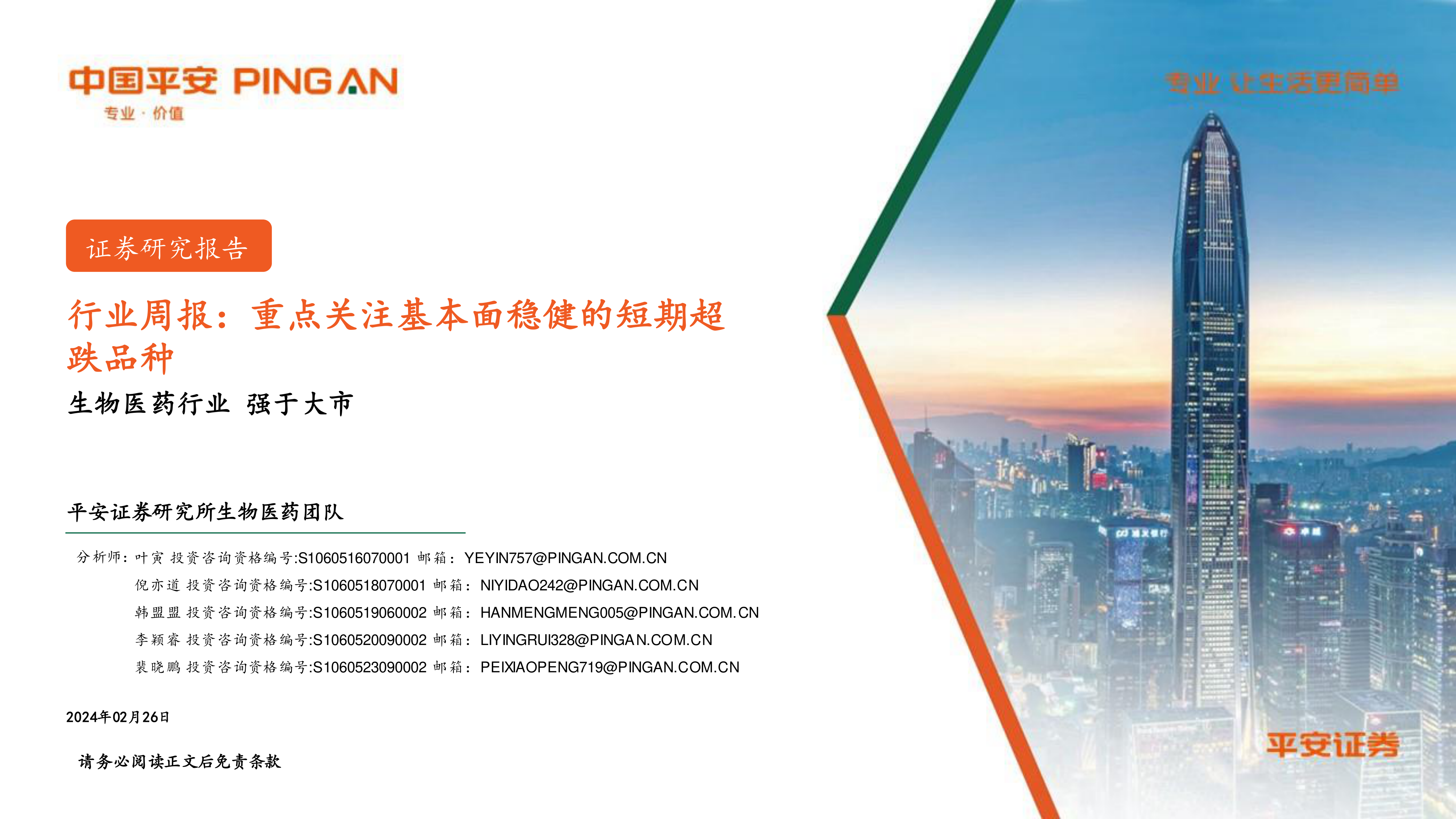 生物医药行业周报:重点关注基本面稳健的短期超跌品种