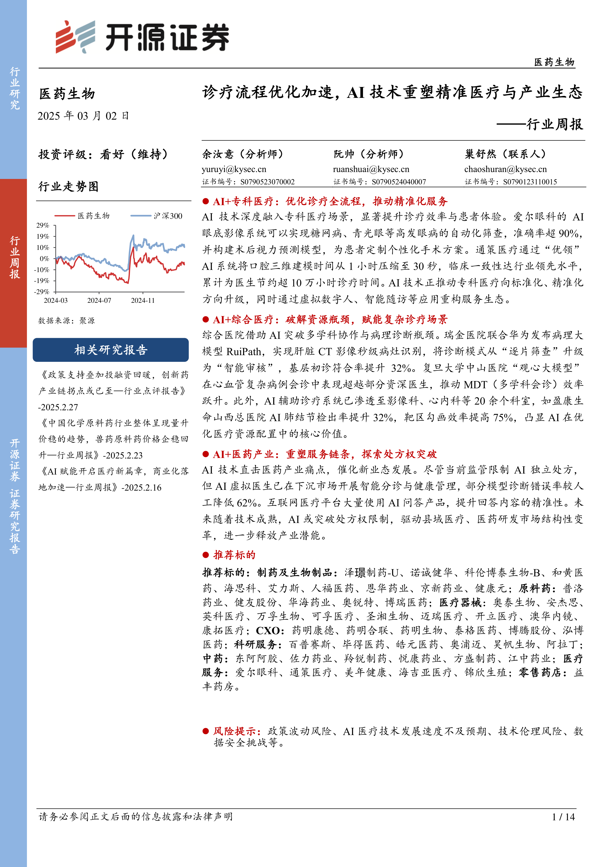 医药生物行业周报:诊疗流程优化加速,AI技术重塑精准医疗与产业生态