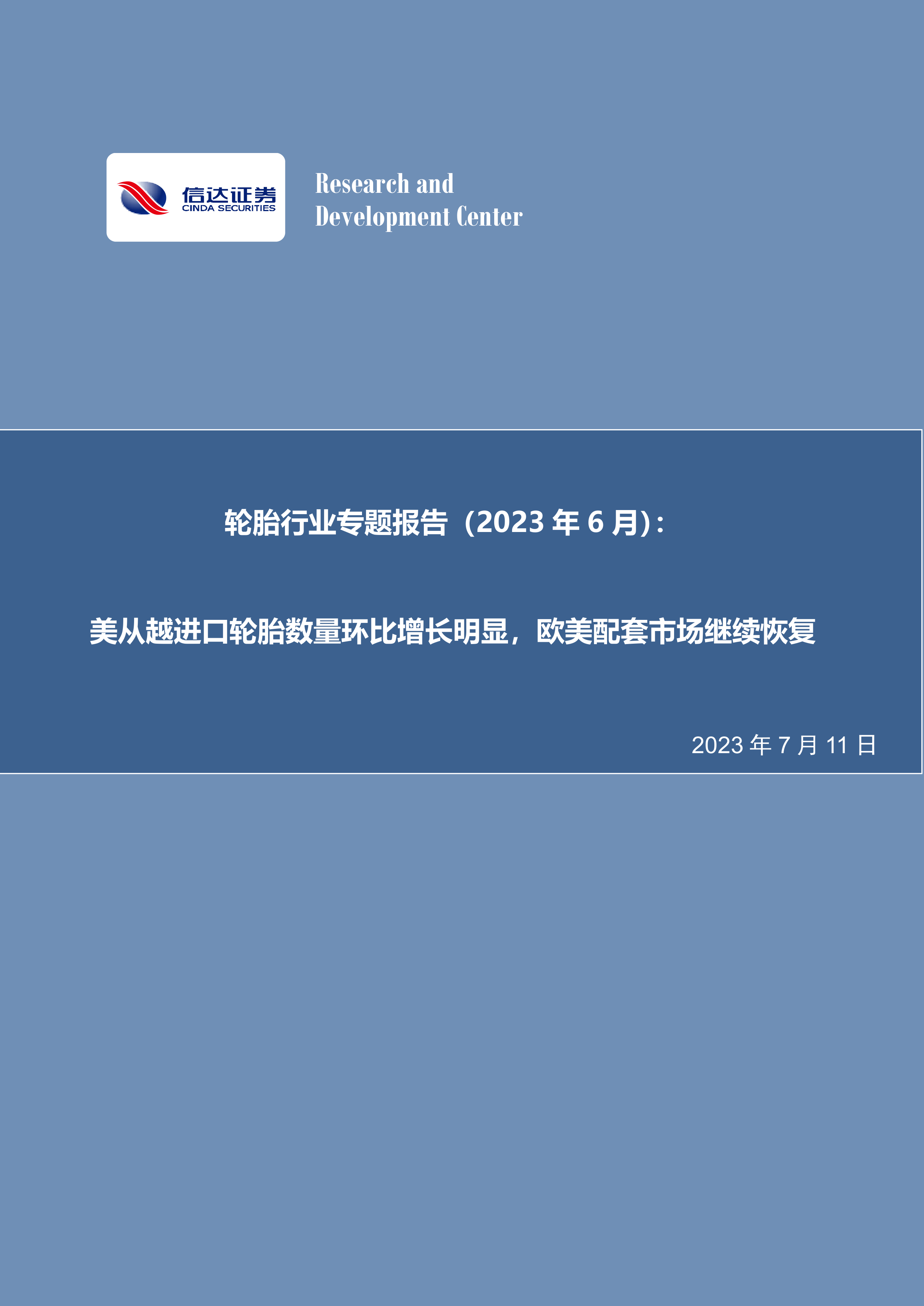 轮胎行业专题报告(2023年6月):美从越进口轮胎数量环比增长明显,欧美配套市场继续恢复