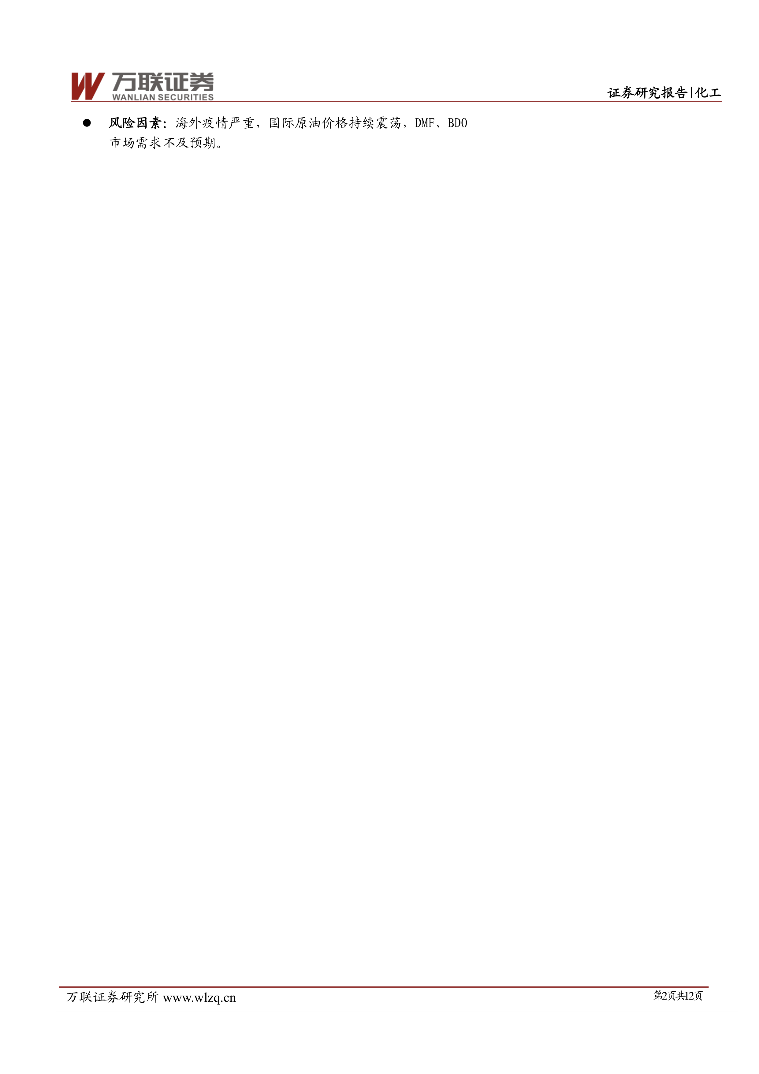 风险因素:海外疫情严重,国际原油价格持续震荡,DMF、BDO市场需求不及预期。