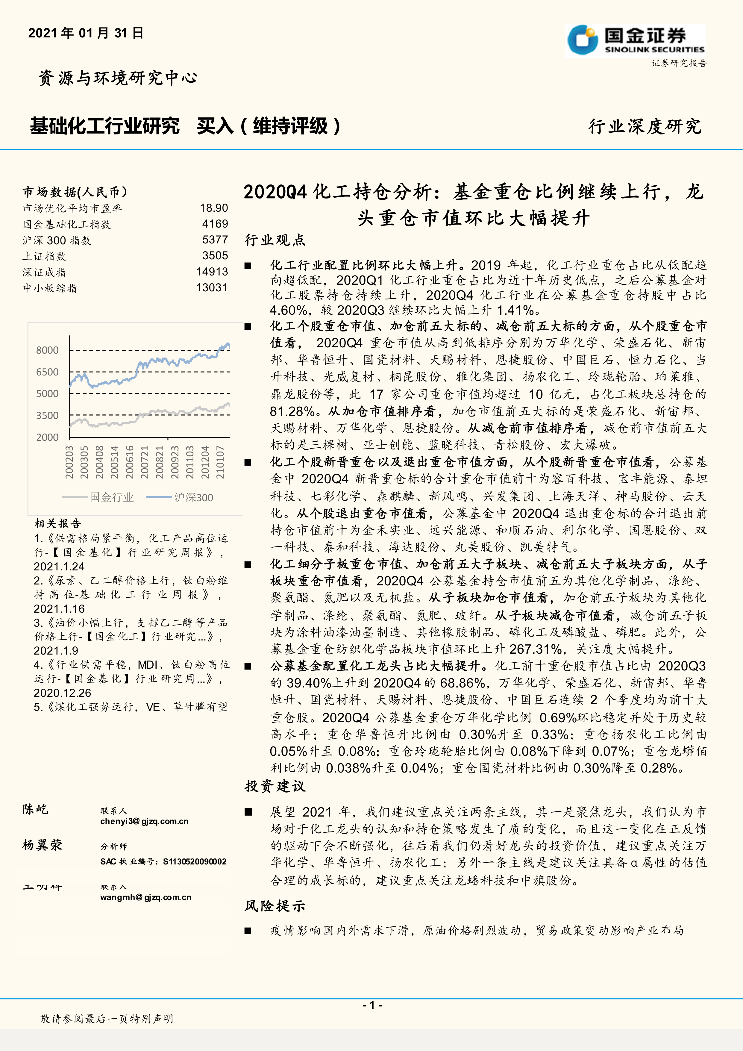 本报告基于2020年第四季度公募基金化工行业持仓数据,对化工行业投资市场进行分析。核心观点如下: