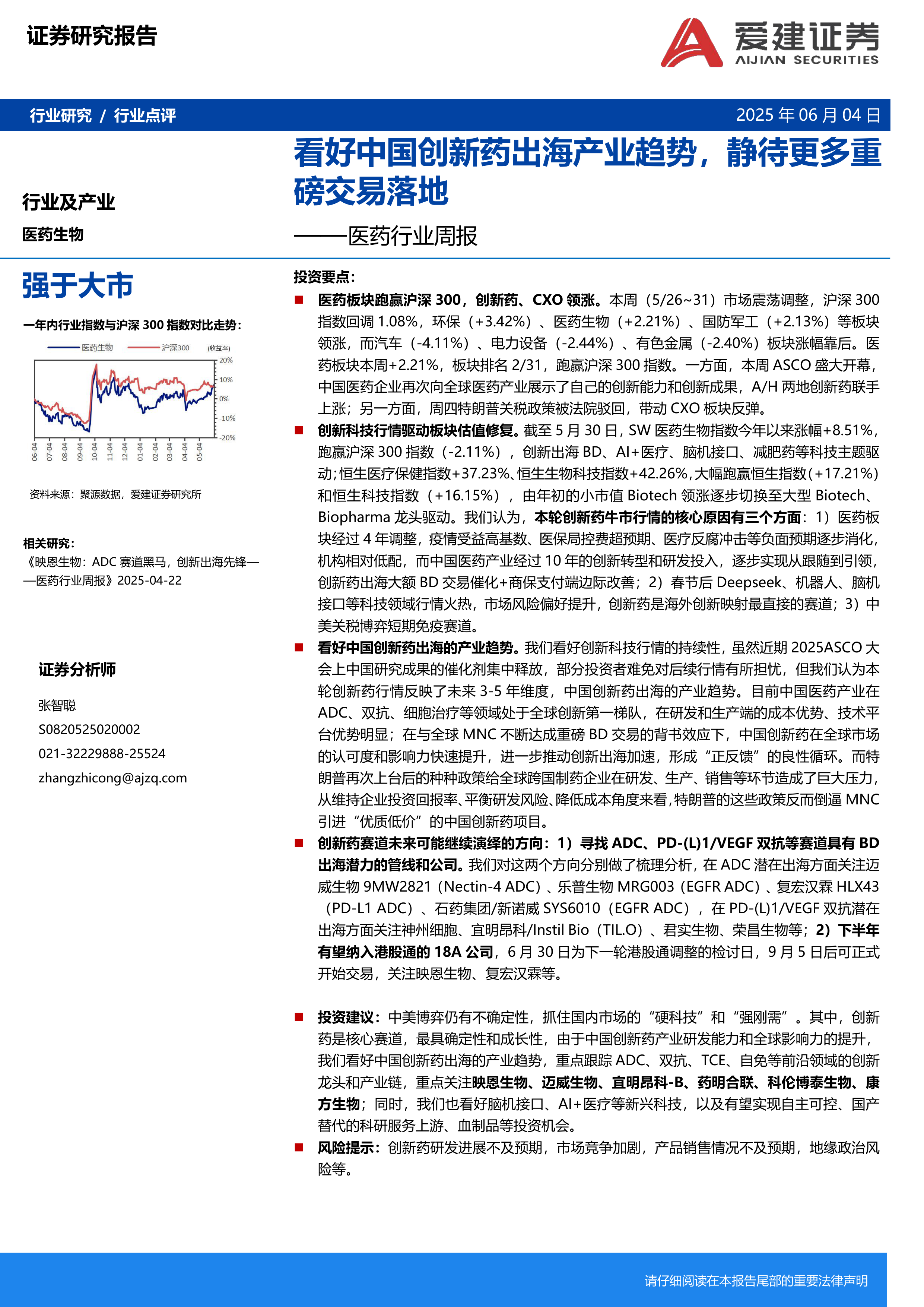 医药行业周报:看好中国创新药出海产业趋势,静待更多重磅交易落地