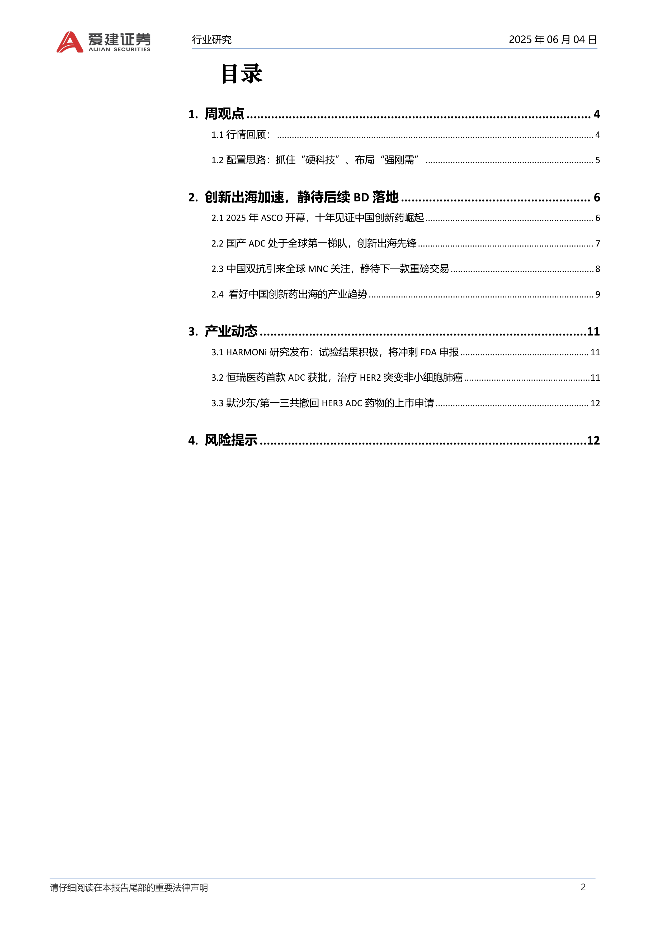 看好中国创新药出海的产业趋势。我们看好创新科技行情的持续性,虽然近期2025ASCO大会上中国研究成果的催化剂集中释放,部分投资者难免对后续行情有所担忧,但我们认为本轮创新药行情反映了未来3-5年维度,中国创新药出海的产业趋势。目前中国医药产业在ADC、双抗、细胞治疗等领域处于全球创新第一梯队,在研发和生产端的成本优势、技术平台优势明显;在与全球MNC不断达成重磅BD交易的背书效应下,中国创新药在全球市场的认可度和影响力快速提升,进一步推动创新出海加速,形成“正反馈”的良性循环。而特朗普再次上台后的种种政策给全球跨国制药企业在研发、生产、销售等环节造成了巨大压力,从维持企业投资回报率、平衡研发风险、降低成本角度来看,特朗普的这些政策反而倒逼MNC引进“优质低价”的中国创新药项目。