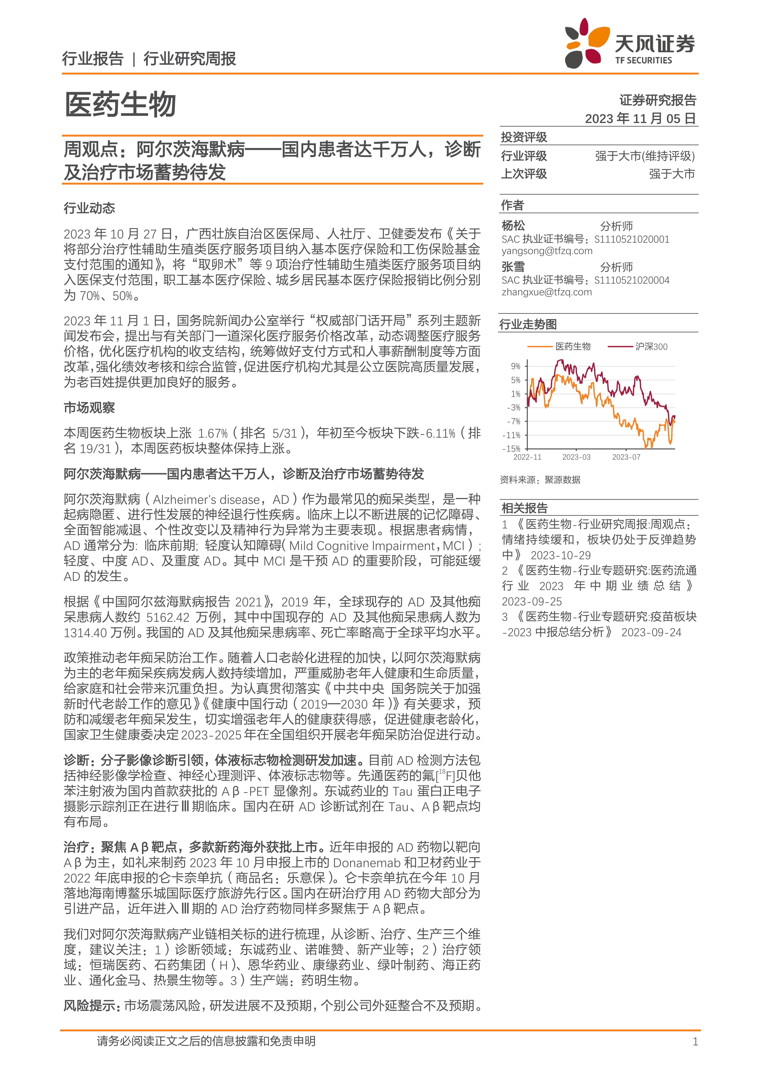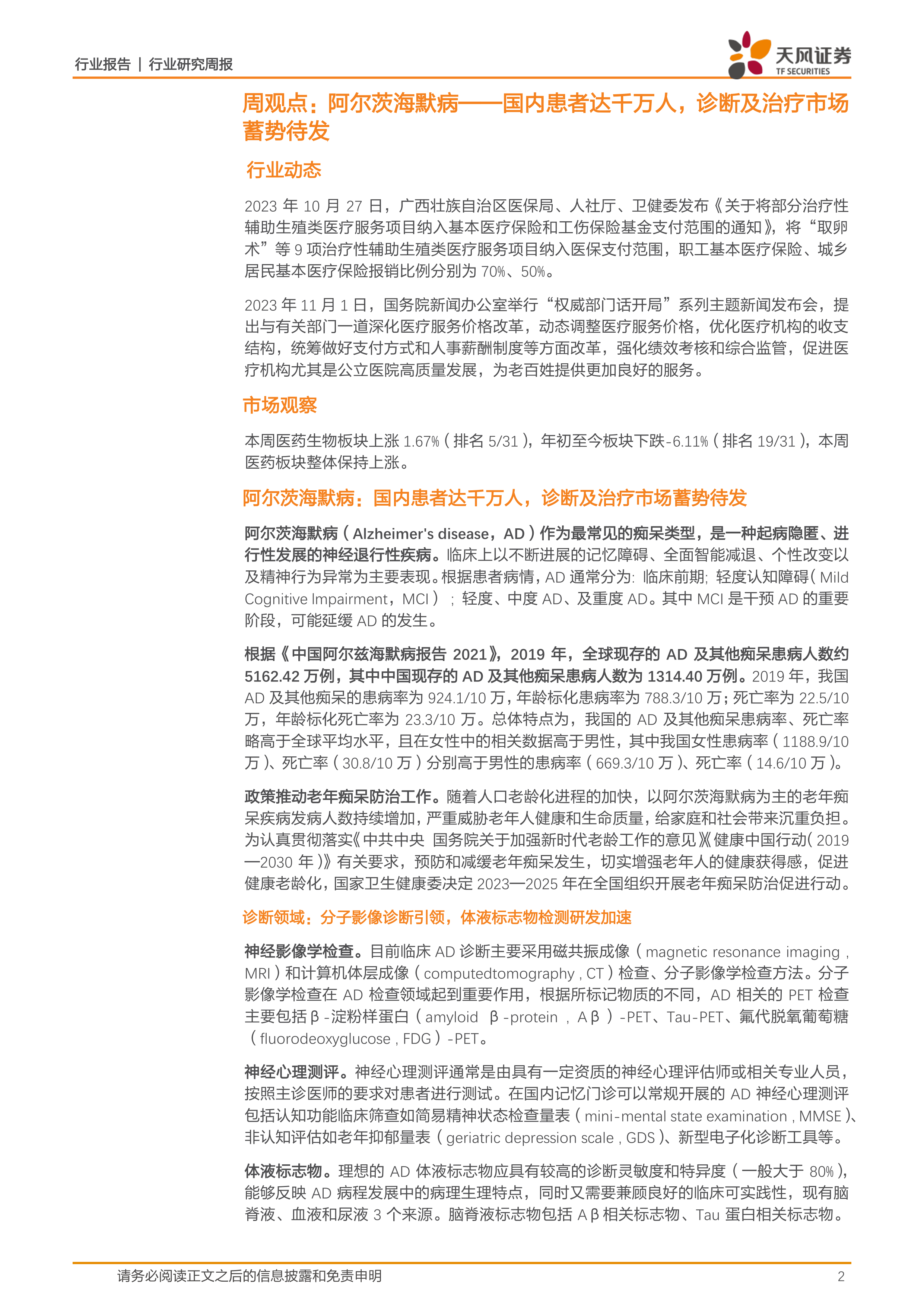 医药生物周观点:阿尔茨海默病——国内患者达千万人,诊断及治疗市场蓄势待发