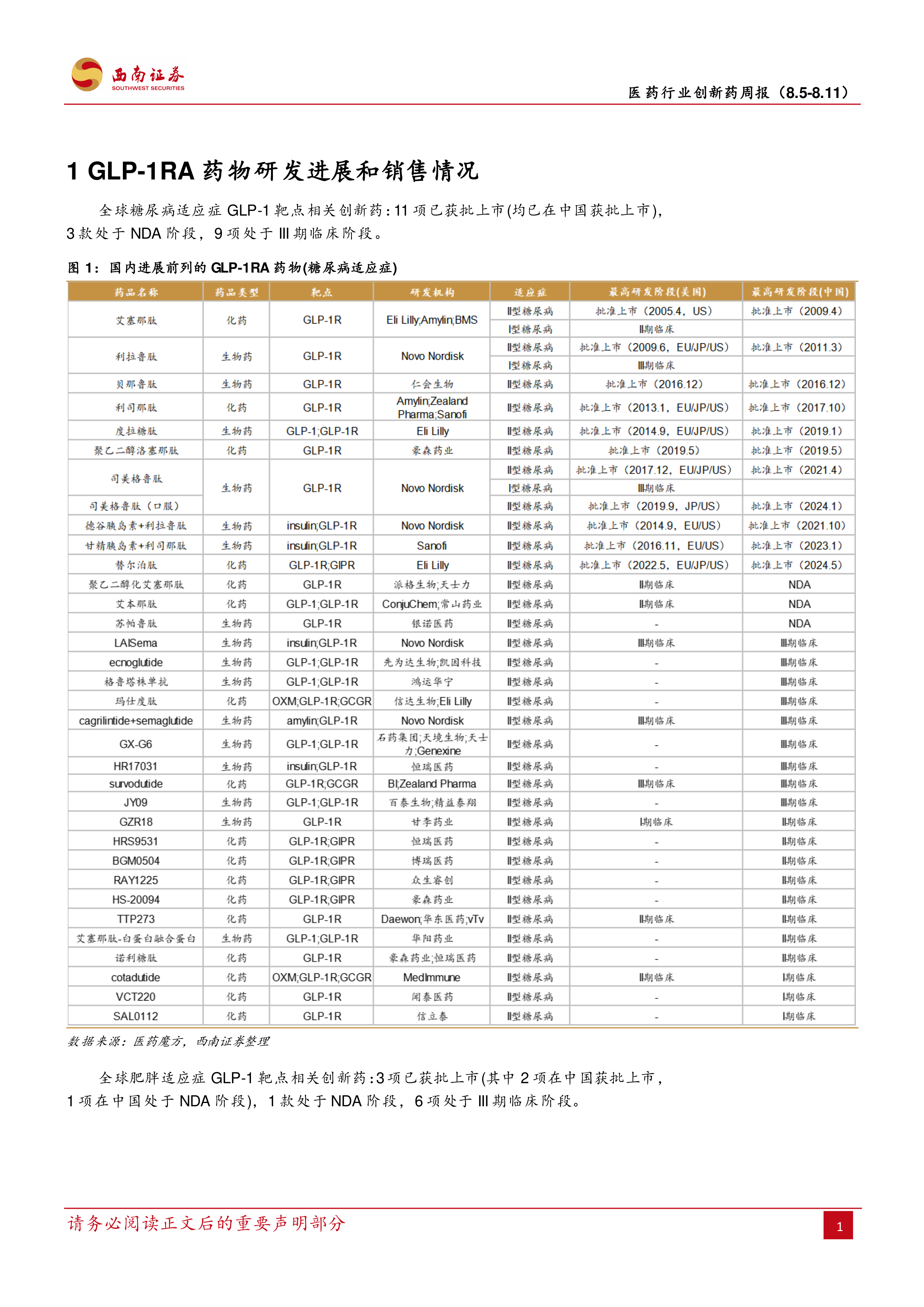 本报告基于西南证券对2024年8月5日至11日医药行业创新药市场的研究,核心观点如下: