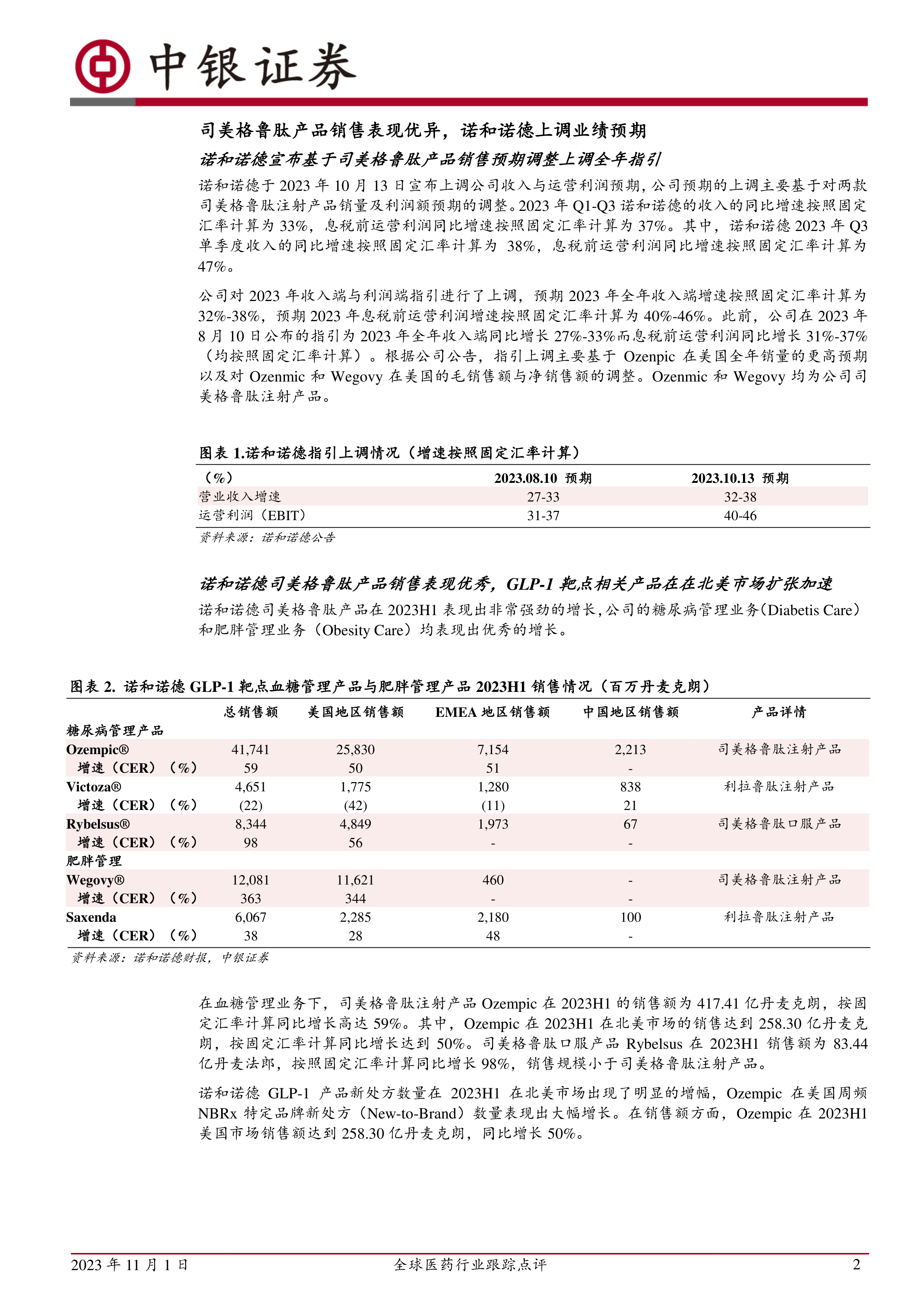 全球医药行业跟踪点评:司美格鲁肽销售表现优异,GLP-1药物仍有较大发展潜力-诺和诺德司美格鲁肽产品销售增速强劲,全球多条GLP-1管线临床表现亮眼