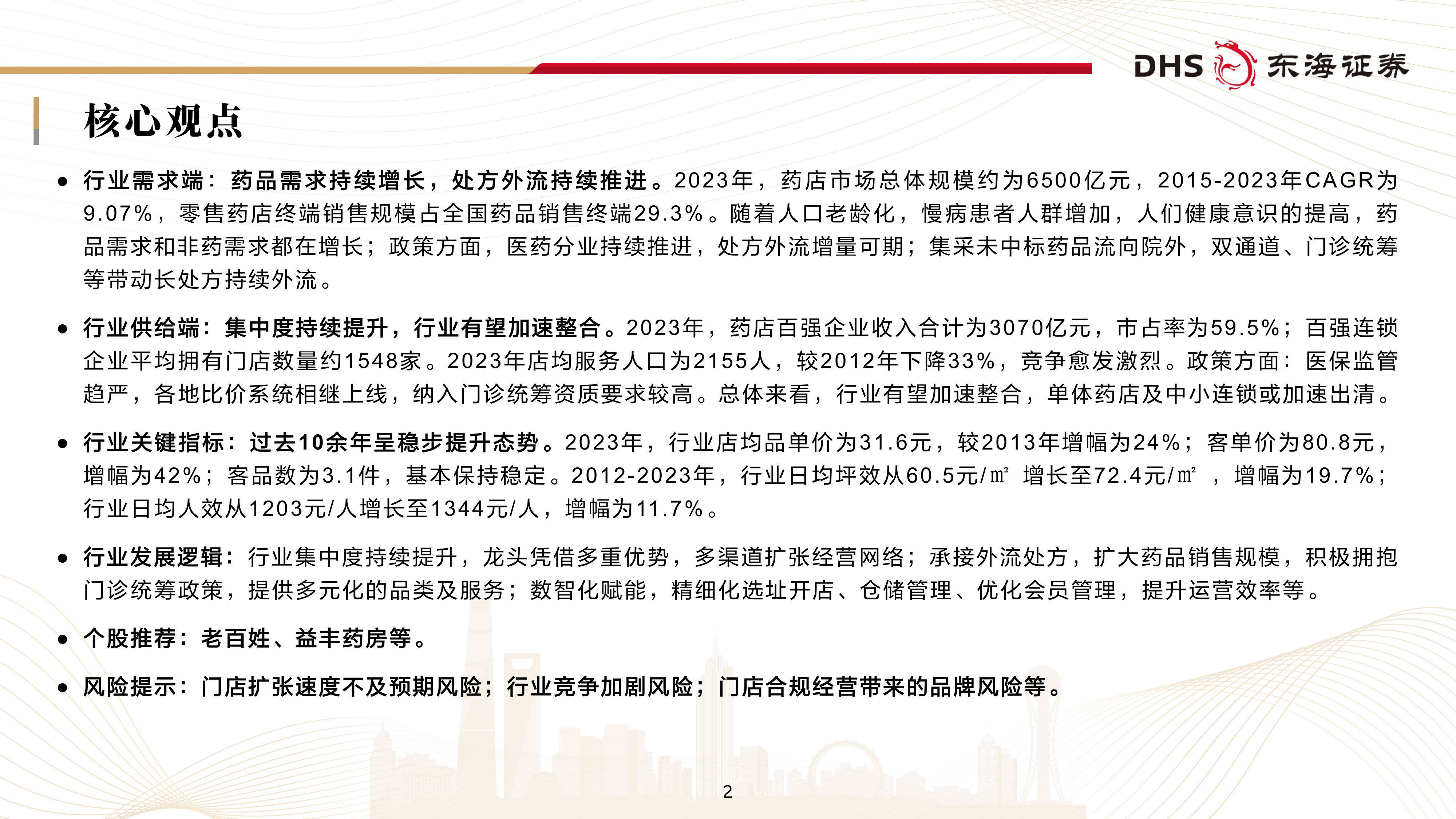 个股推荐:老百姓、益丰药房等。