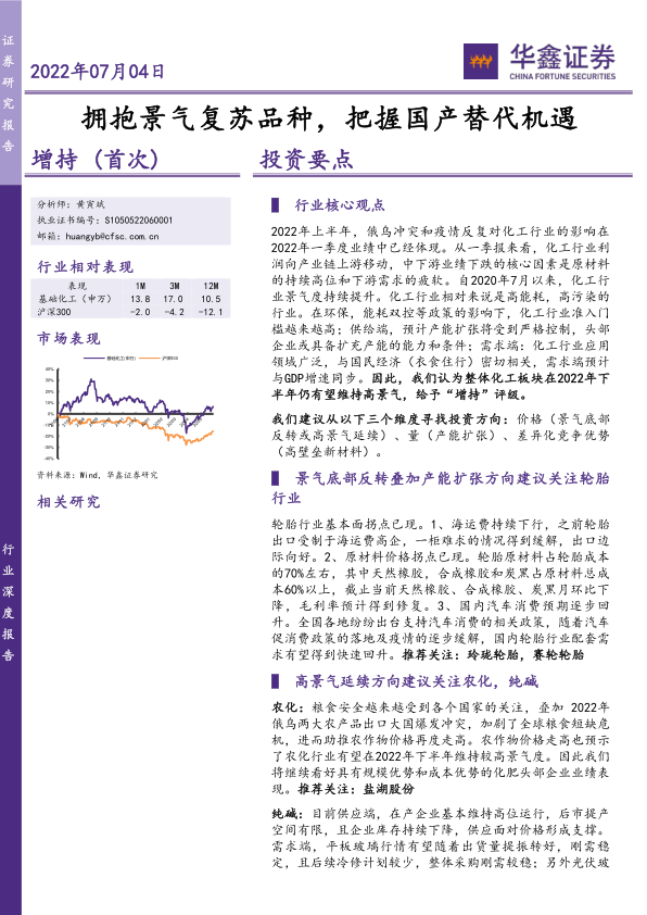 化工:拥抱景气复苏品种,把握国产替代机遇