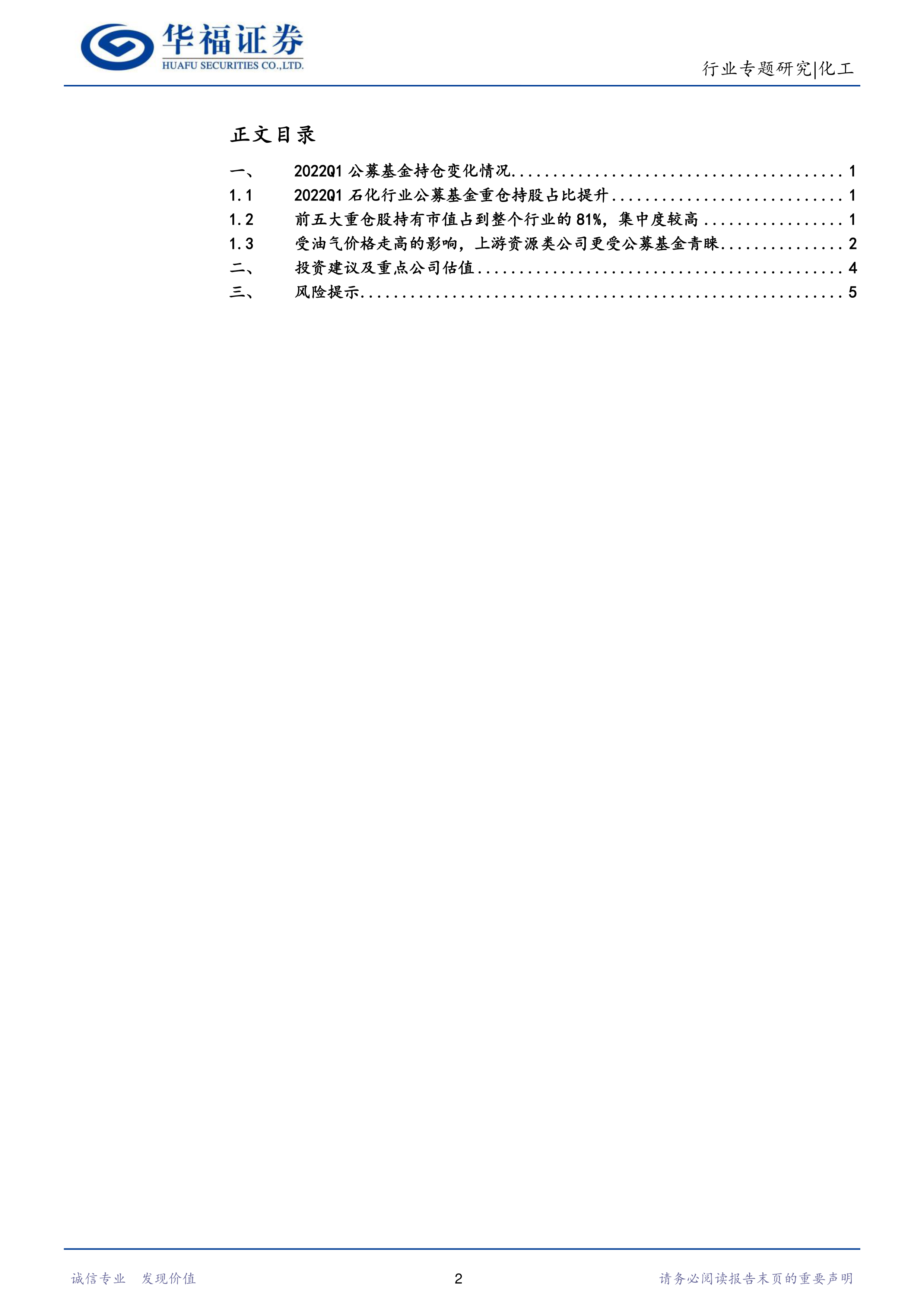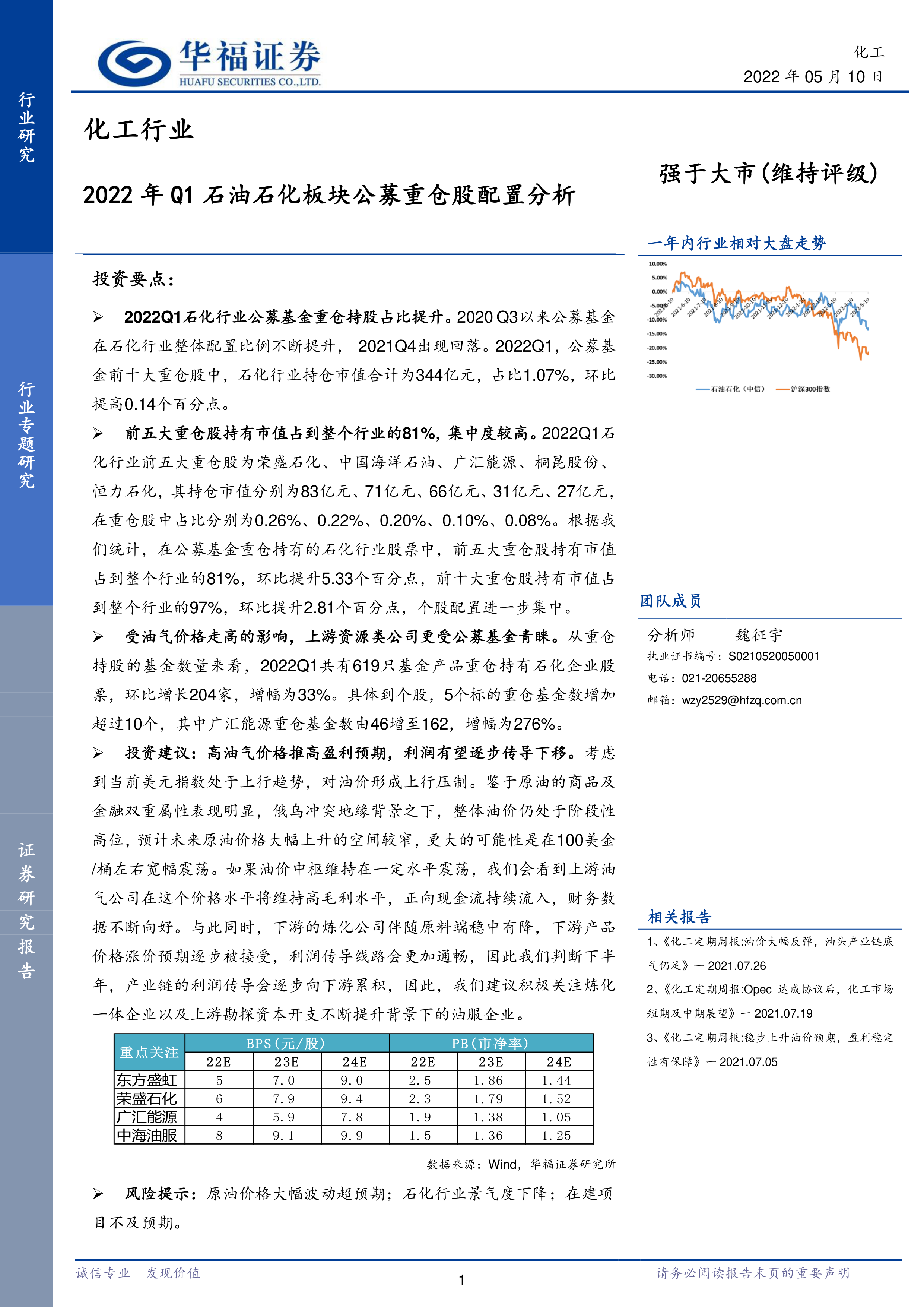 化工行业:2022年Q1石油石化板块公募重仓股配置分析