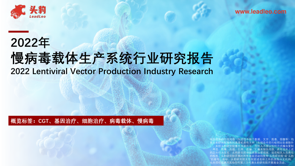 本报告从慢病毒载体生产系统行业综述、痛点与解决方案、产业链分析、发展环境分析以及发展趋势五个方面展开论述。