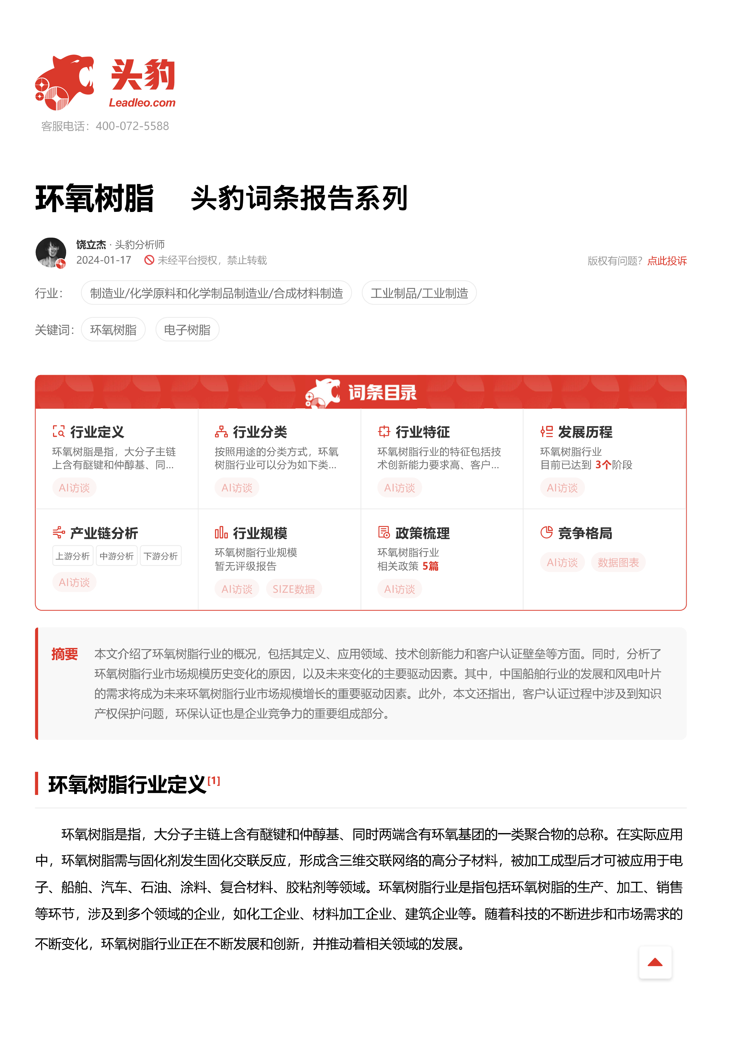 环氧树脂 头豹词条报告系列