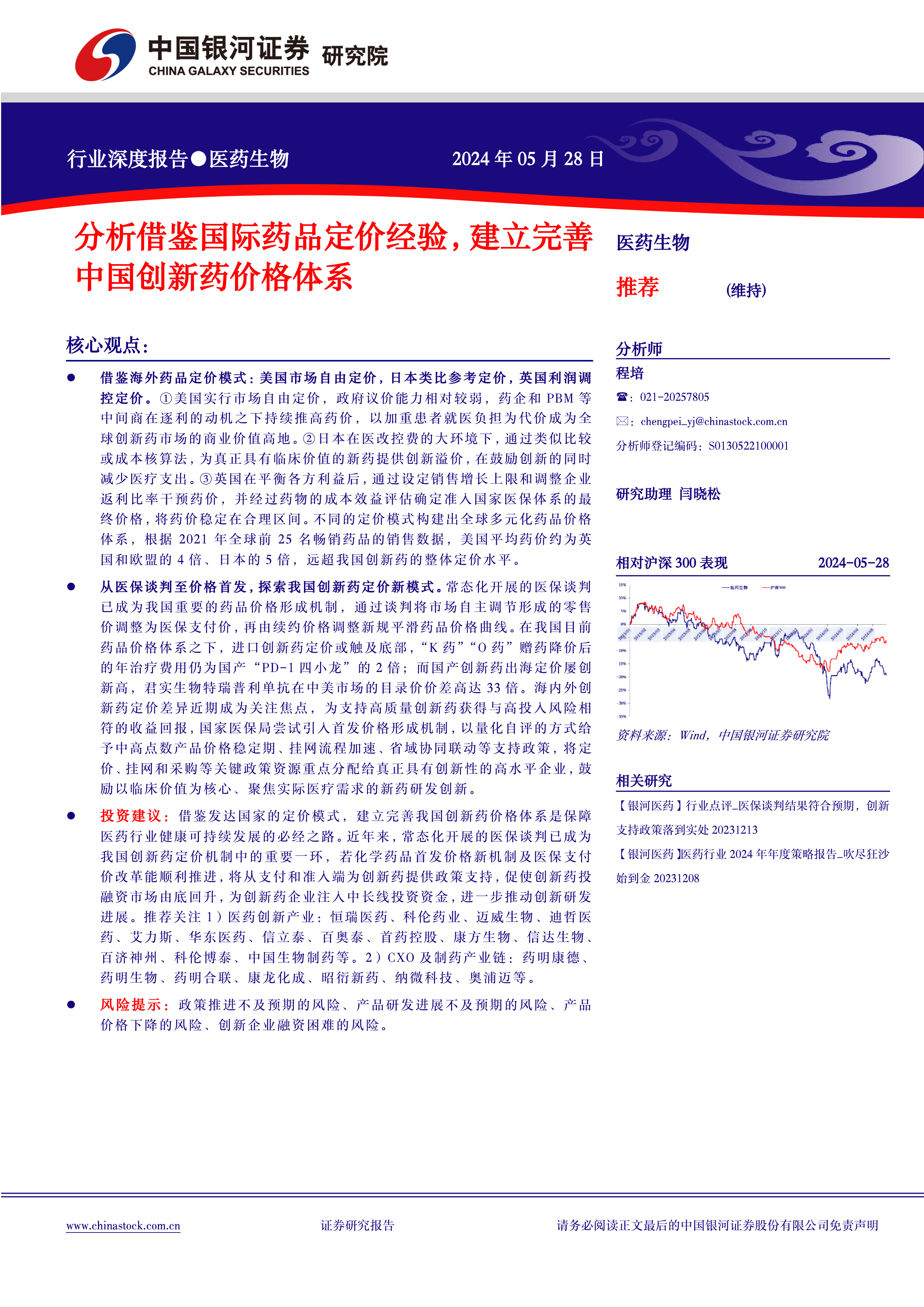 医药生物行业深度报告:分析借鉴国际药品定价经验,建立完善中国创新药价格体系