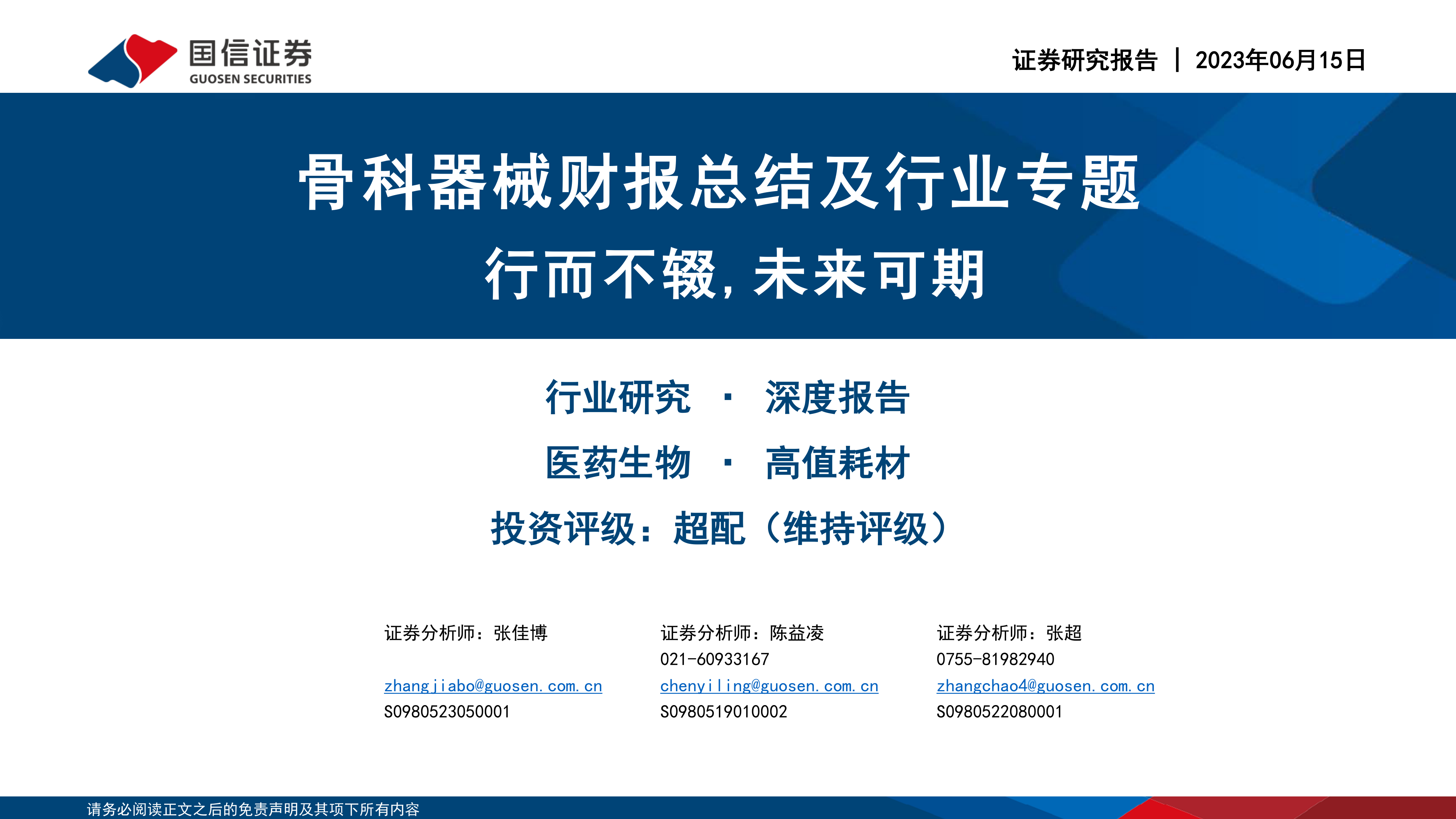 骨科器械财报总结及行业专题:行而不辍,未来可期