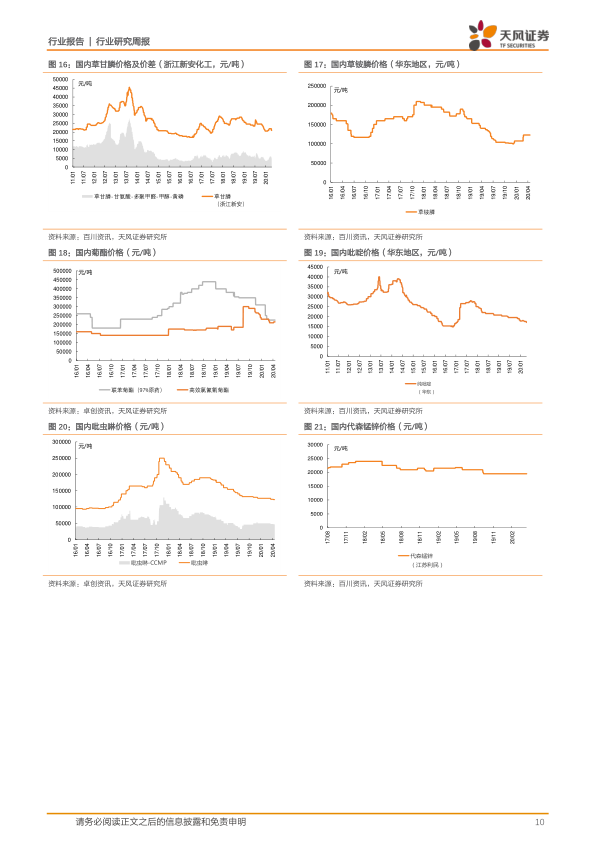 子行业观点:(1)新和成1季度业绩超预期,有望带动维生素板块行情;关注圣达生物和浙江医药,D3涨价关注花园生物;(2)现处于国内外农药春耕备耕时点,企业复工有序推进;环保、安全、疫情因素叠加影响对行业供给的冲击可能进一步加剧,加速行业的优胜劣汰。关注印度疫情发展对国内农药出口市场影响。重点推荐一是产业链一体化、技术及单品竞争优势突出的细分领域龙头扬农化工、利尔化学;二是拥有涨价弹性大品种的标的百傲化学、湖南海利;三是建议关注制剂企业安道麦,以及利民股份和广信股份。(3)国际车厂加码电动汽车,疫情短期影响不改行业中长期趋势,继续推荐业绩超预期的锂电材料龙头新宙邦。(4)柴油车国六推行致沸石需求高增长,OLED业务进入业绩释放期,推荐万润股份。(5)长期看好低估值龙头万华化学(市值明显低估,大乙烯投产临近,疫情结束后MDI重回提价周期)、华鲁恒升(市值明显低估,产品价格周期底部,新项目陆续投放)、三友化工(粘胶涨价)。
