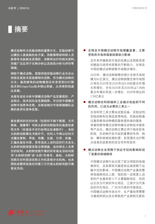 2022年中国专精特新系列研究报告:模式动物行业——供需共振的“活试剂”(摘要版)