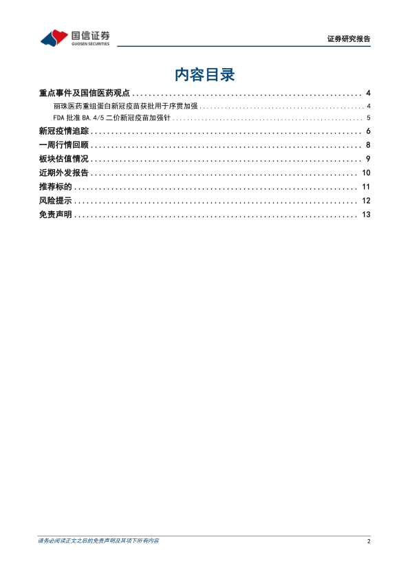 医药生物周报(22年第36周):丽珠医药新冠疫苗获批序贯加强,FDA批准BA.4/5二价加强针
