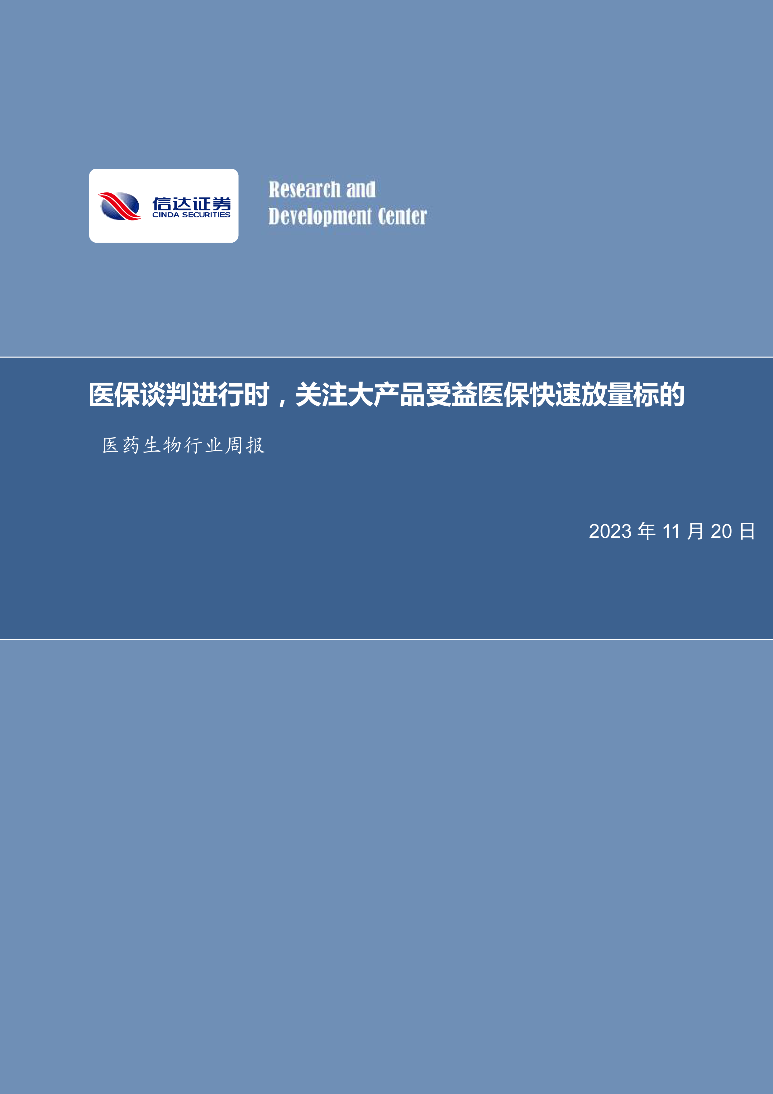 医药生物行业周报:医保谈判进行时,关注大产品受益医保快速放量标的