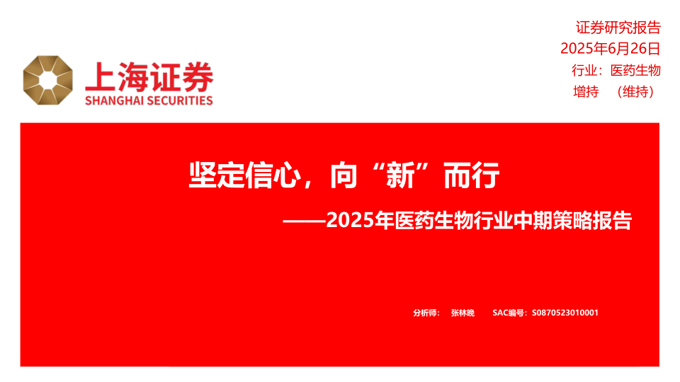 2025年医药生物行业中期策略报告:坚定信心,向“新”而行
