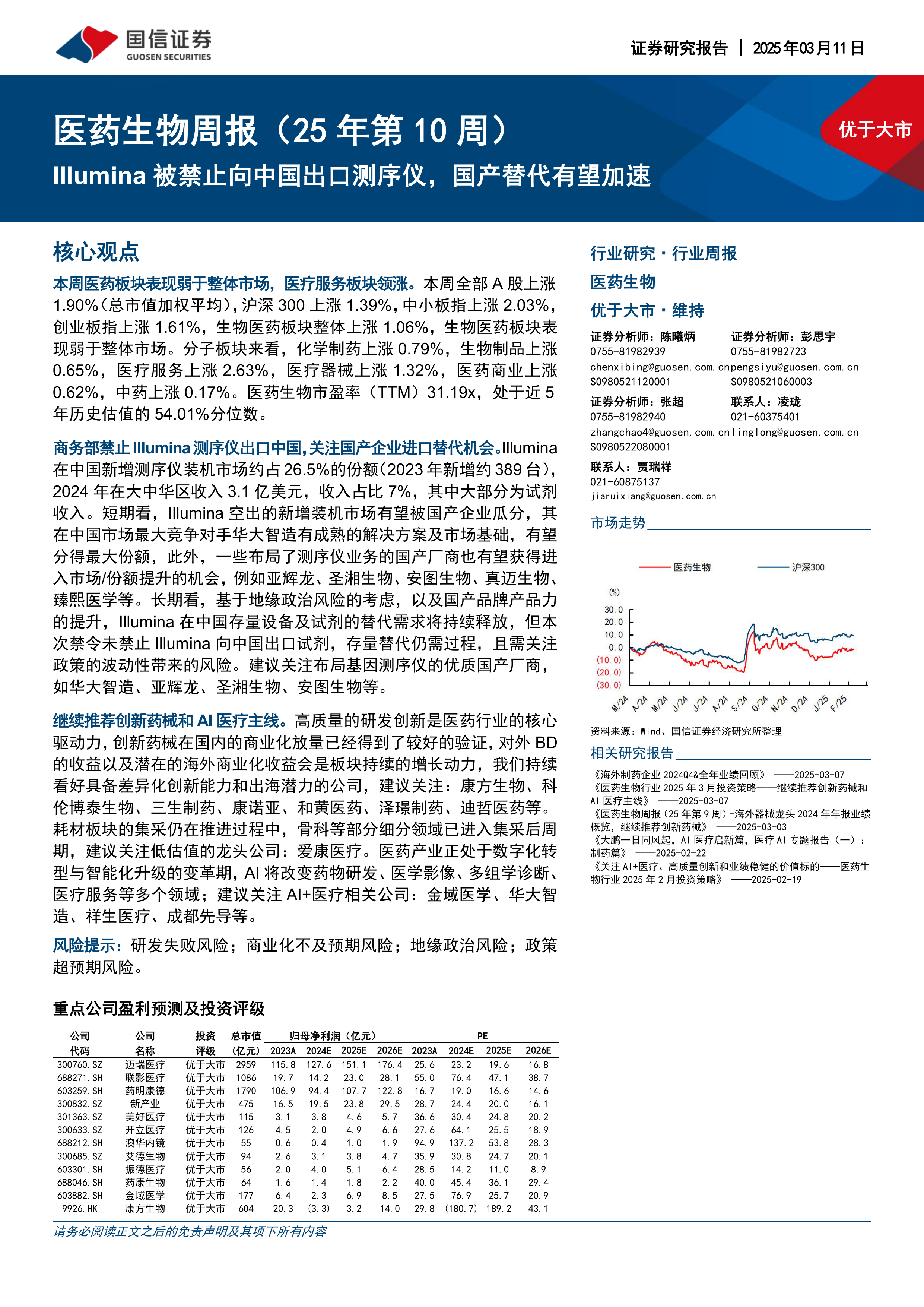 医药生物周报(25年第10周):Illumina被禁止向中国出口测序仪,国产替代有望加速