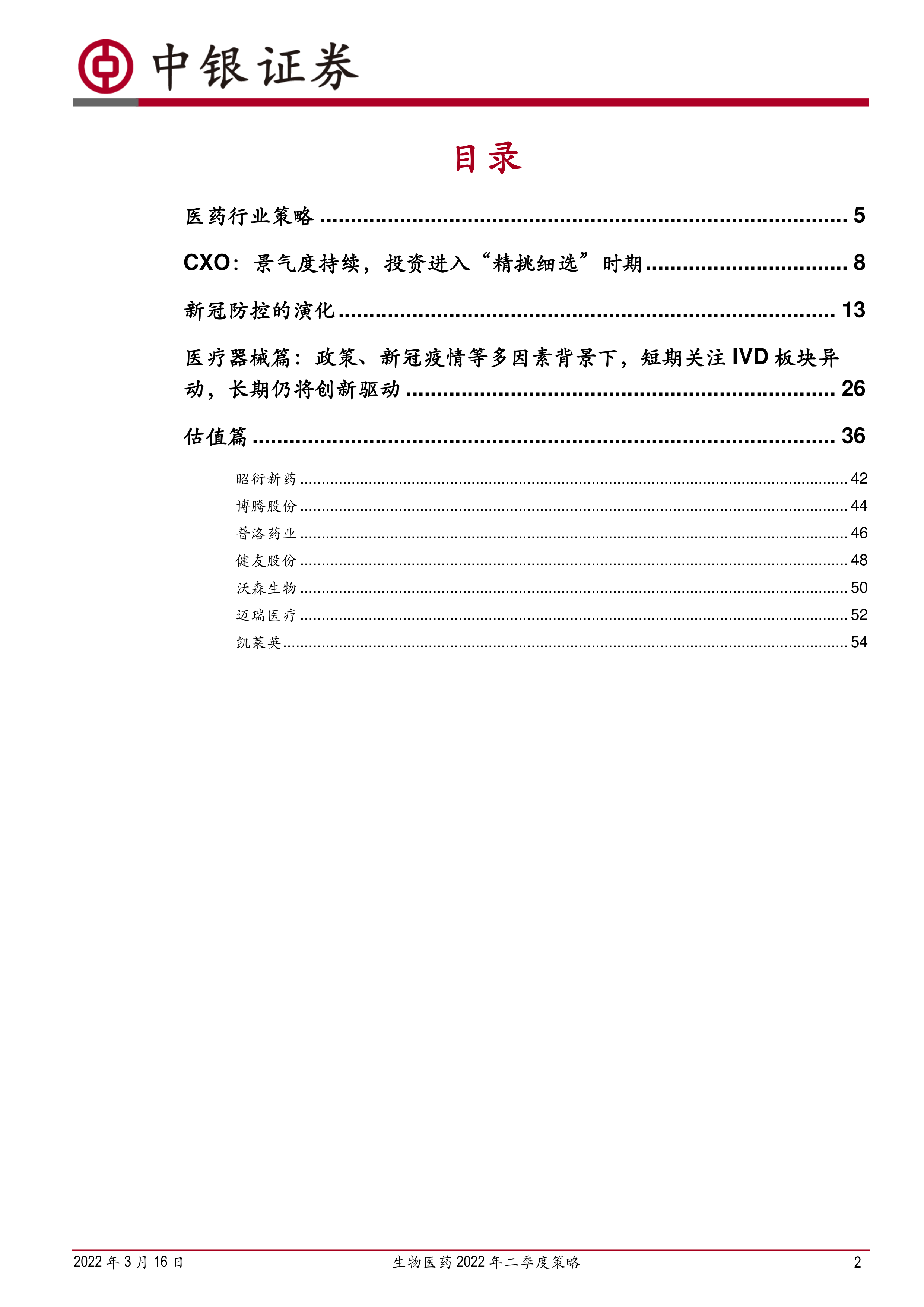 本报告的核心观点是:2022年二季度,中国医药生物板块将保持整体稳定,但机会主要体现在局部板块和个股。经历了2021年的泡沫挤压后,板块估值趋于理性,部分板块已进入合理区间。CXO行业仍将保持高景气度增长,但竞争将加剧,投资需精挑细选;创新药领域仍具吸引力,但需关注临床价值和市场竞争;新冠疫情相关疫苗、特效药和检测需求将持续存在,但需关注政策变化和市场波动。