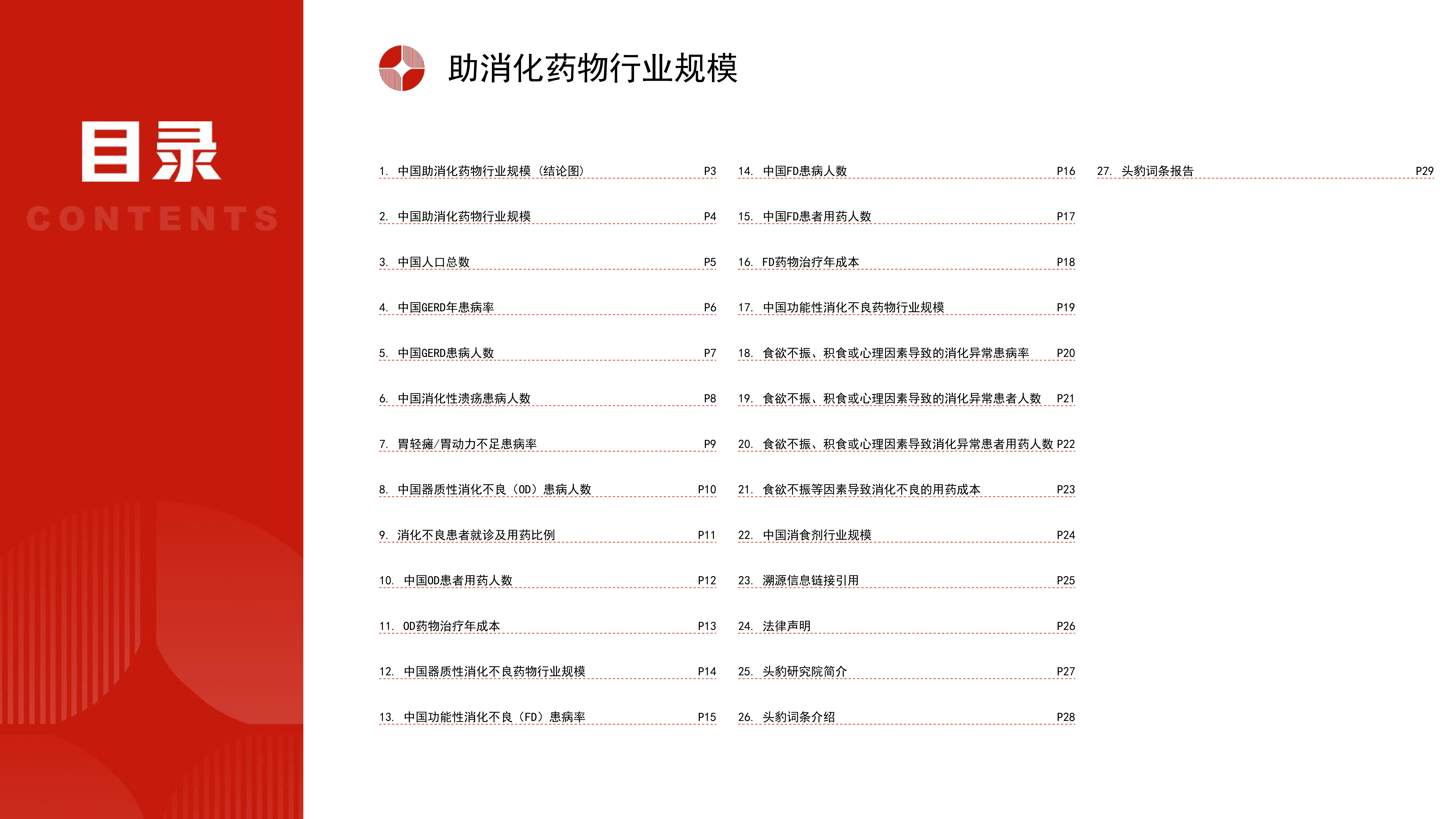 本报告主要基于头豹研究院提供的中国助消化药物市场规模测算数据,对市场规模、患病人数、用药人数、药物成本等关键指标进行了分析。