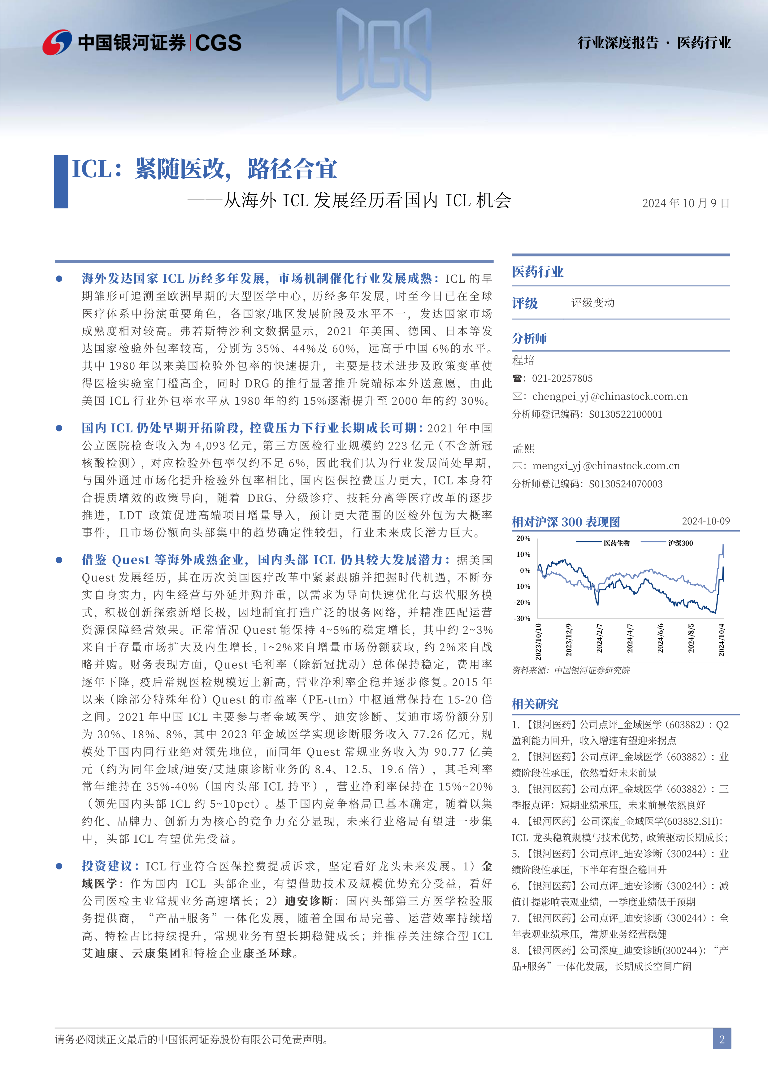 本报告基于海外ICL(独立临床实验室)发展经验,分析国内ICL市场机遇。核心观点如下: