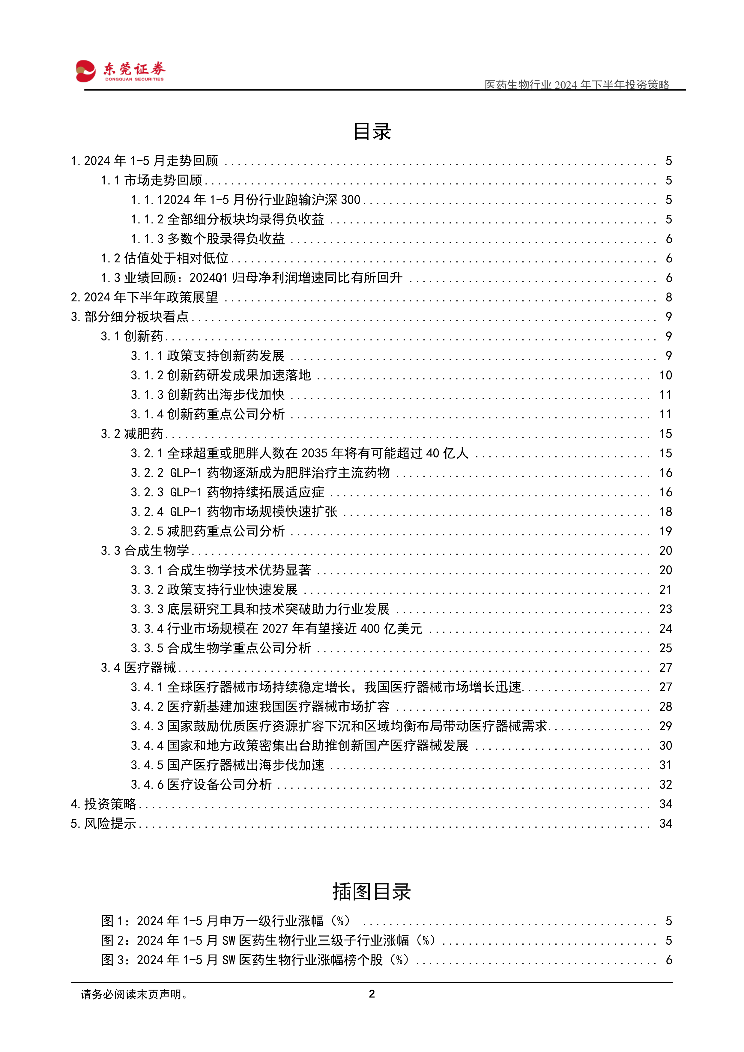 下半年,第十批药品集采对市场冲击有限,医疗反腐影响边际减小,行业业绩有望回归增长。报告建议关注创新药、减肥药、合成生物学和医疗器械四个细分板块的投资机会,同时提示行业竞争加剧、产品降价、政策风险等潜在风险。