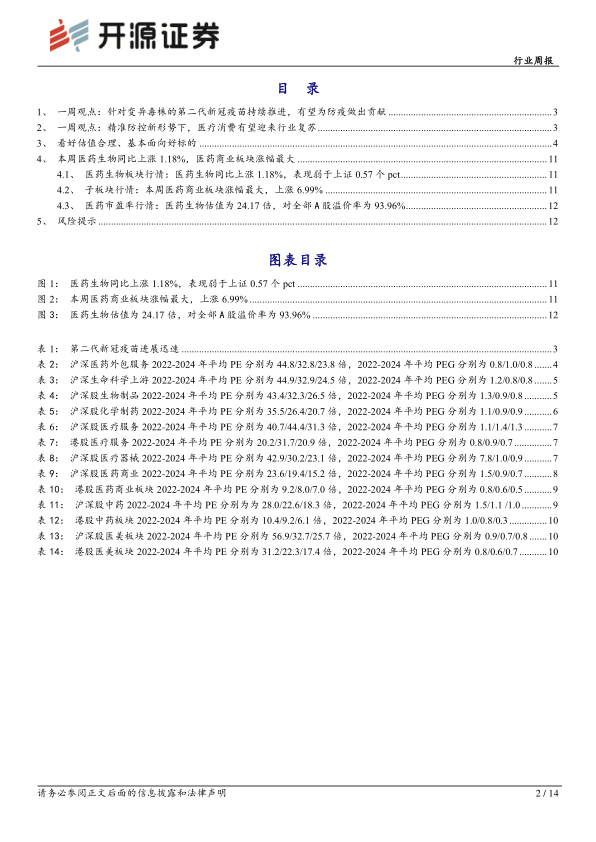 推荐标的: 长线组合: 迈瑞医疗、 开立医疗、澳华内镜、海泰新光、 泰格医药、康龙化成、博腾股份、羚锐制药、康缘药业、人福医药、东诚药业、 益丰药房、老百姓、 健之佳、 海吉亚医疗、新天药业、以岭药业、寿仙谷、盈康生命、伟思医疗、华东医药。 弹性组合: 海尔生物、 采纳股份、昌红科技、康拓医疗、中国中药、太极集团、国际医学、 皓元医药、药石科技、 美迪西、江苏吴中。