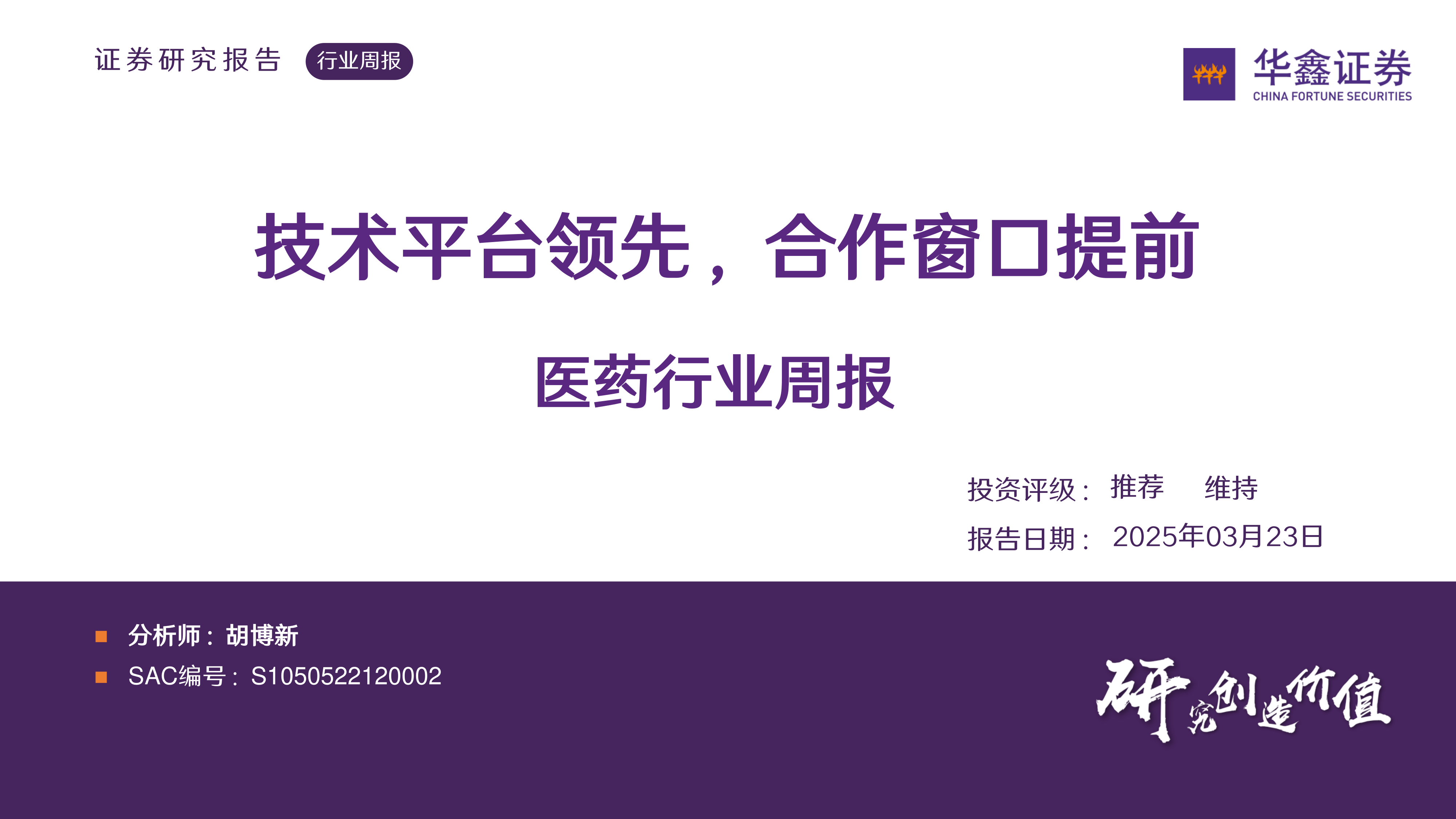 医药行业周报:技术平台领先,合作窗口提前