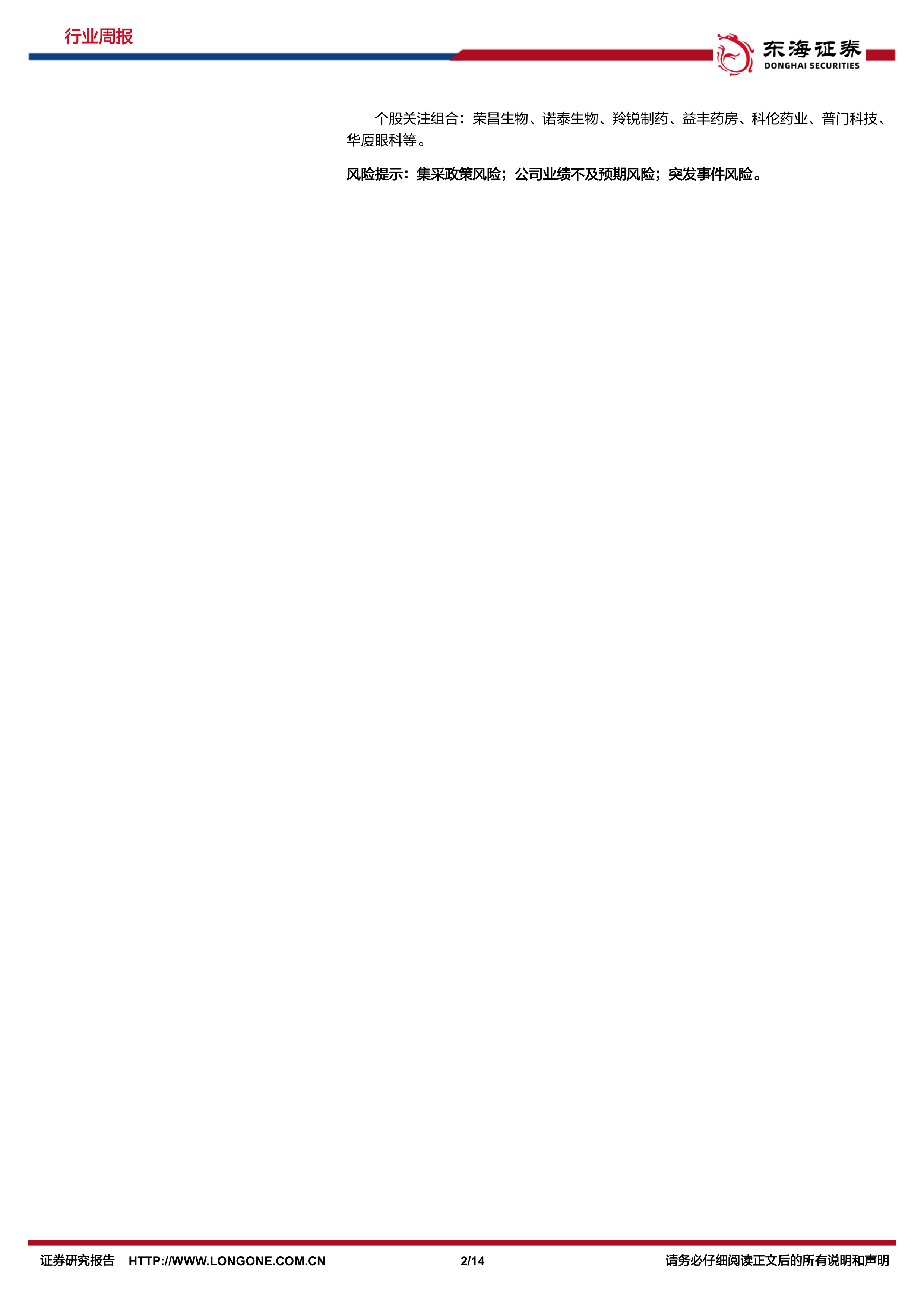个股关注组合:荣昌生物、诺泰生物、羚锐制药、益丰药房、科伦药业、普门科技、华厦眼科等。