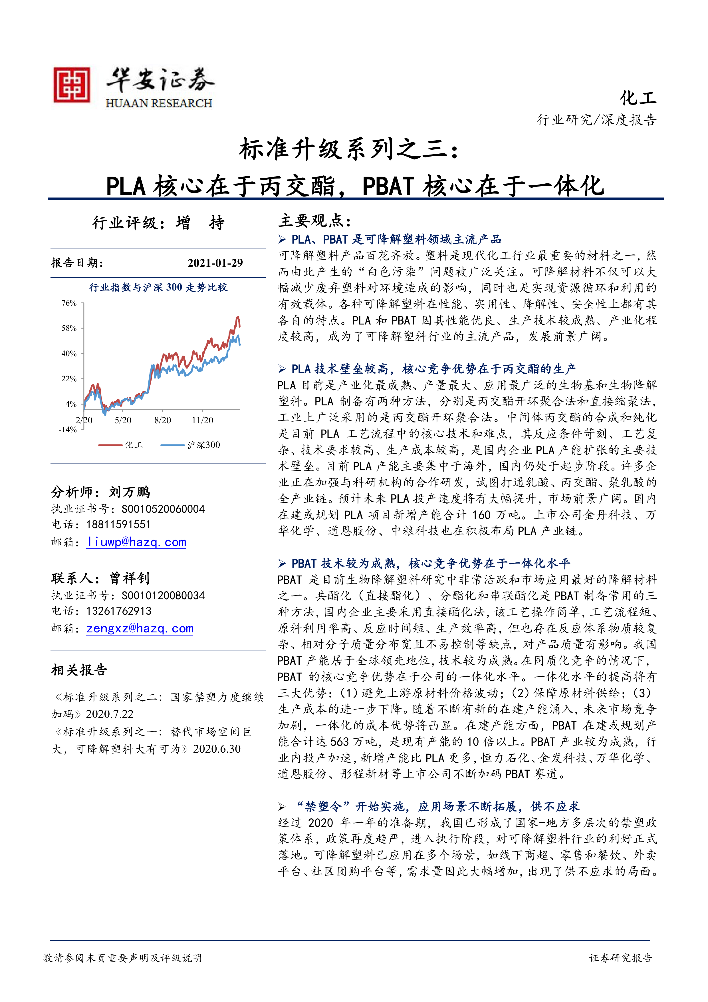 化工:标准升级系列之三:PLA核心在于丙交酯,PBAT核心在于一体化