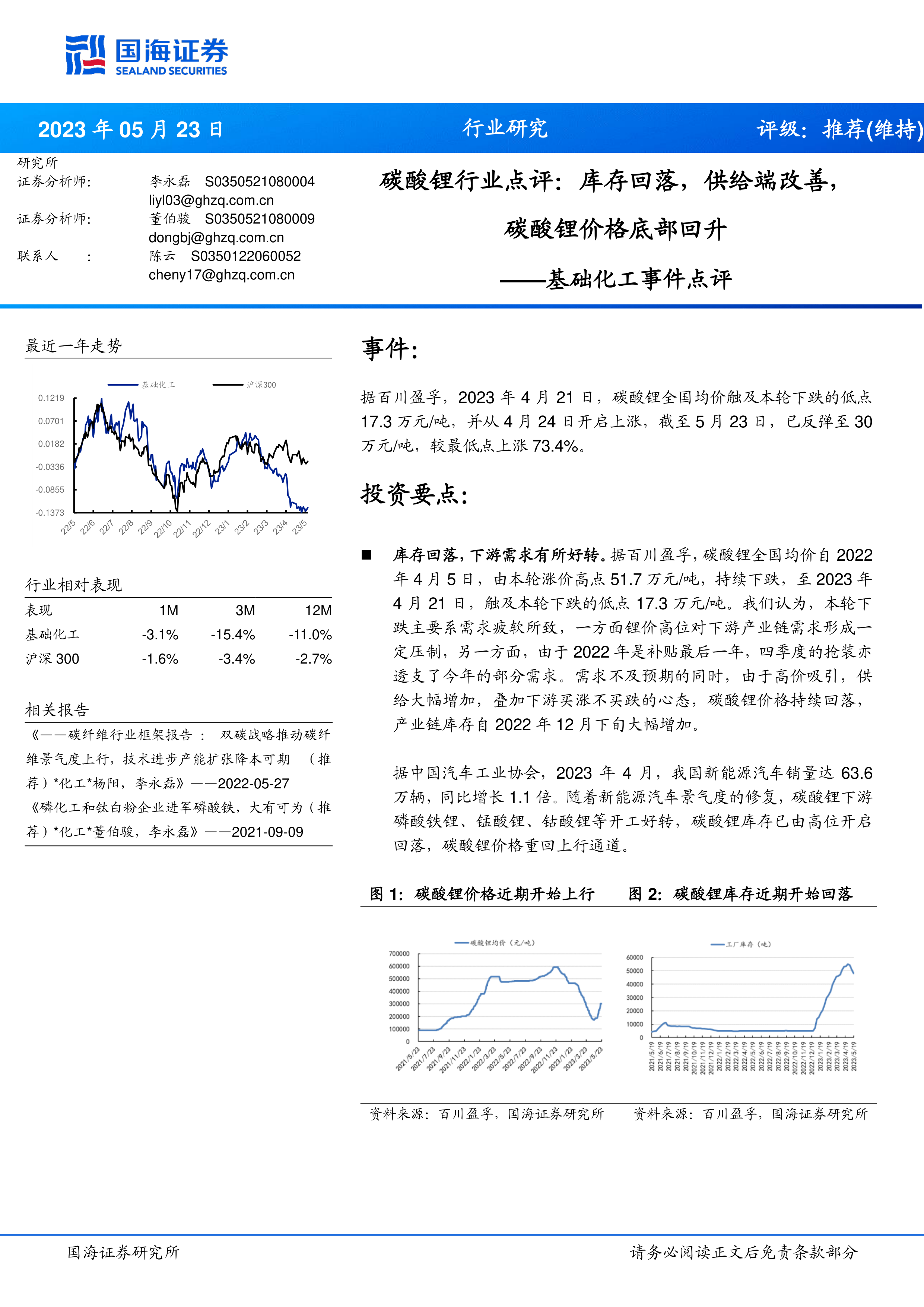 基础化工事件点评:碳酸锂行业点评:库存回落,供给端改善,碳酸锂价格底部回升