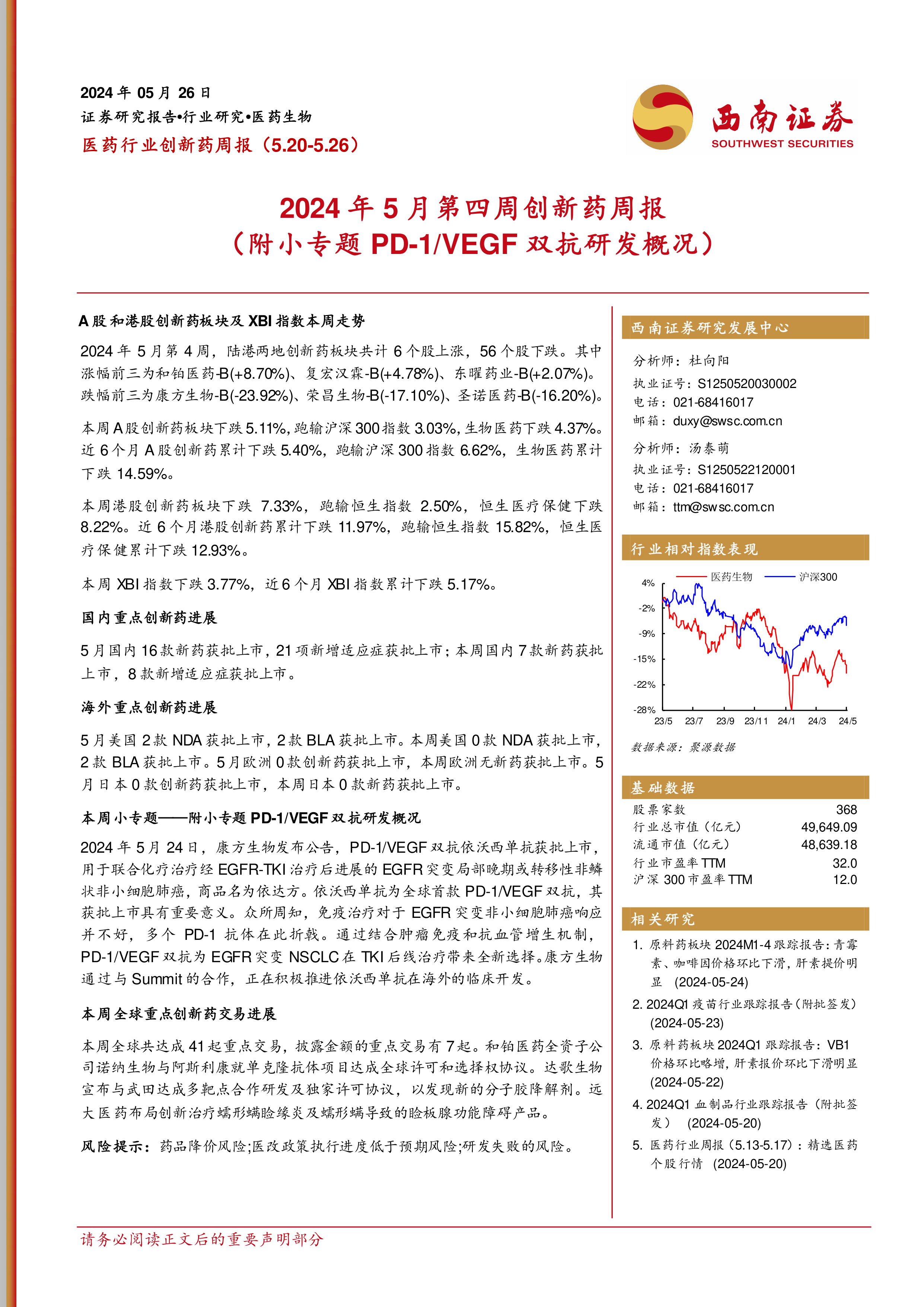 2024年5月第四周创新药周报(附小专题PD-1/VEGF双抗研发概况)