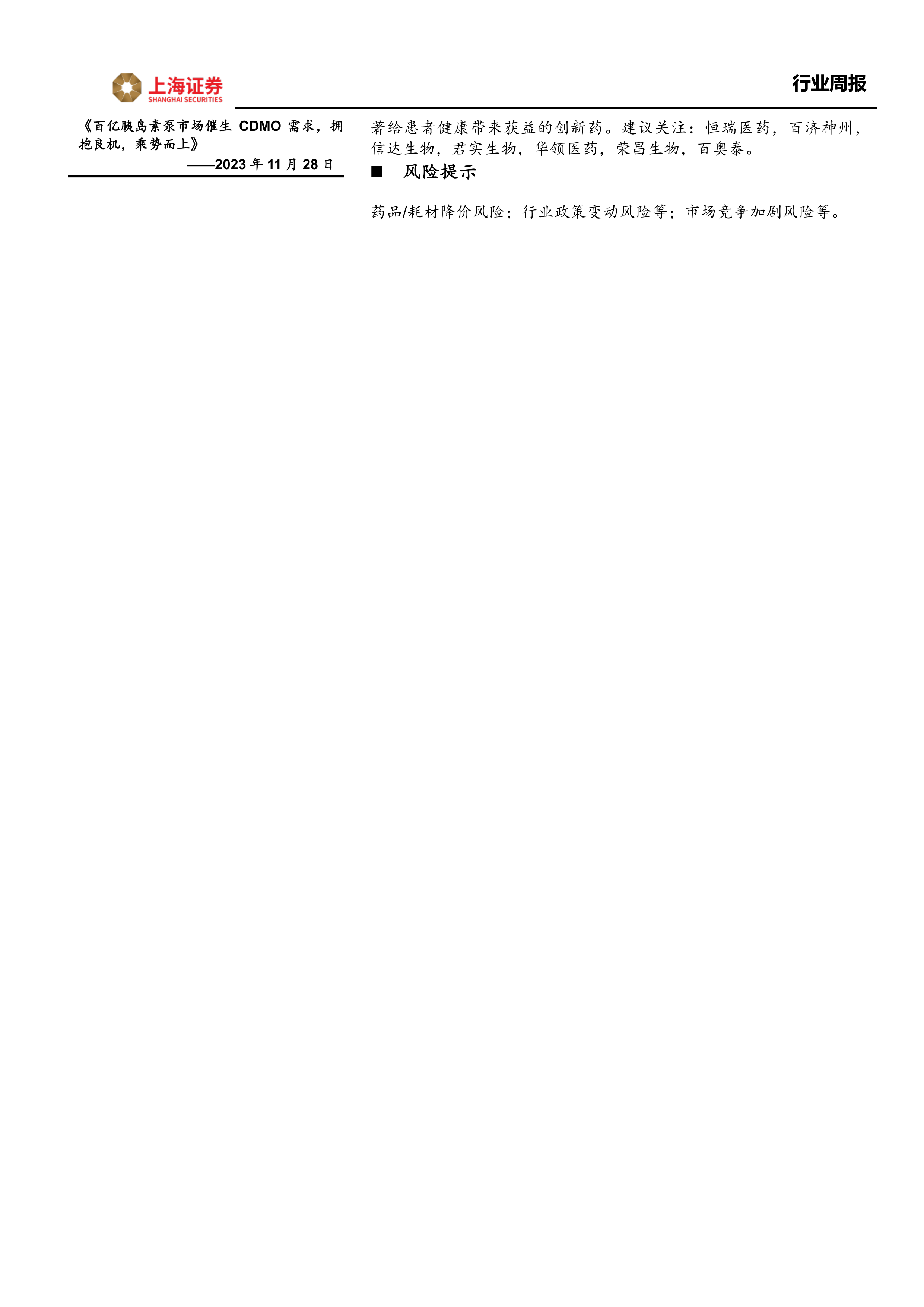 医药生物行业周报:多重共振催化,创新药产业链迎价值兑现期