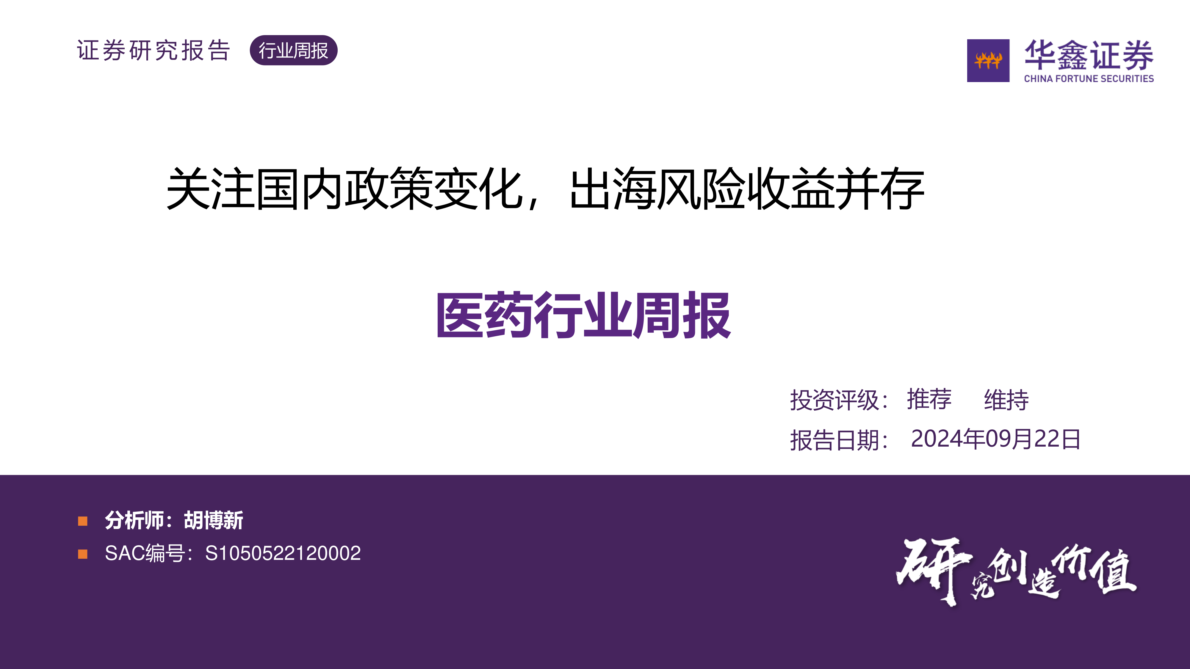医药行业周报:关注国内政策变化,出海风险收益并存