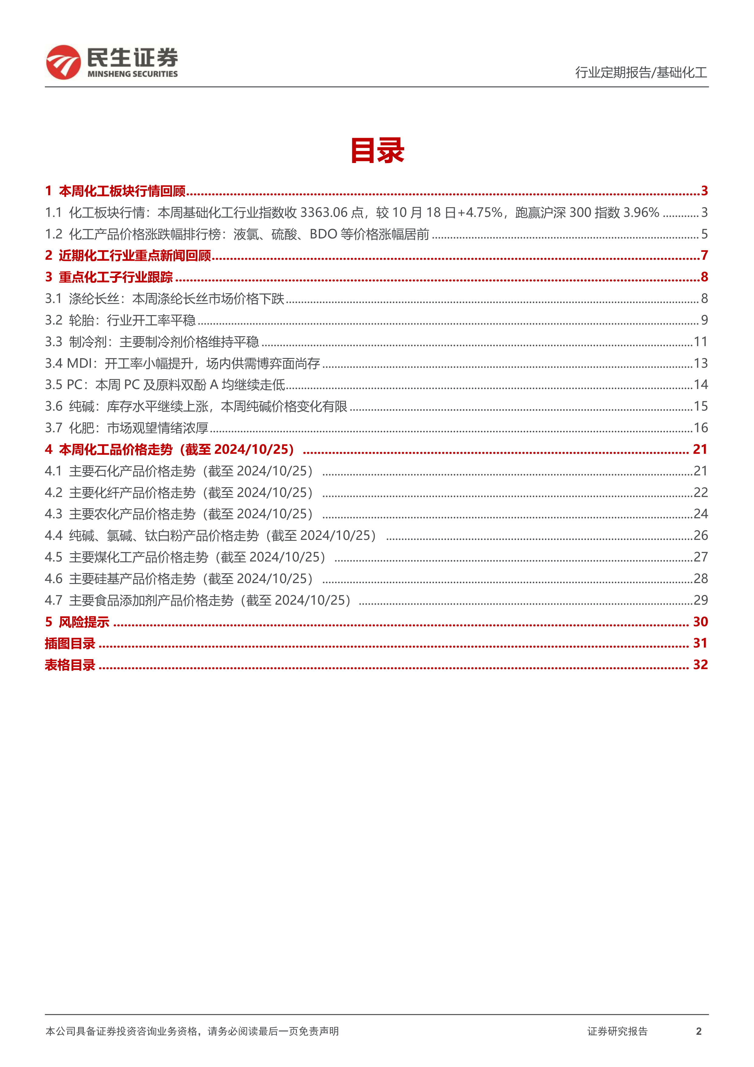 本报告涵盖了2024年10月21日至2024年10月27日期间的化工行业市场表现,并对多个子行业进行了深入分析。