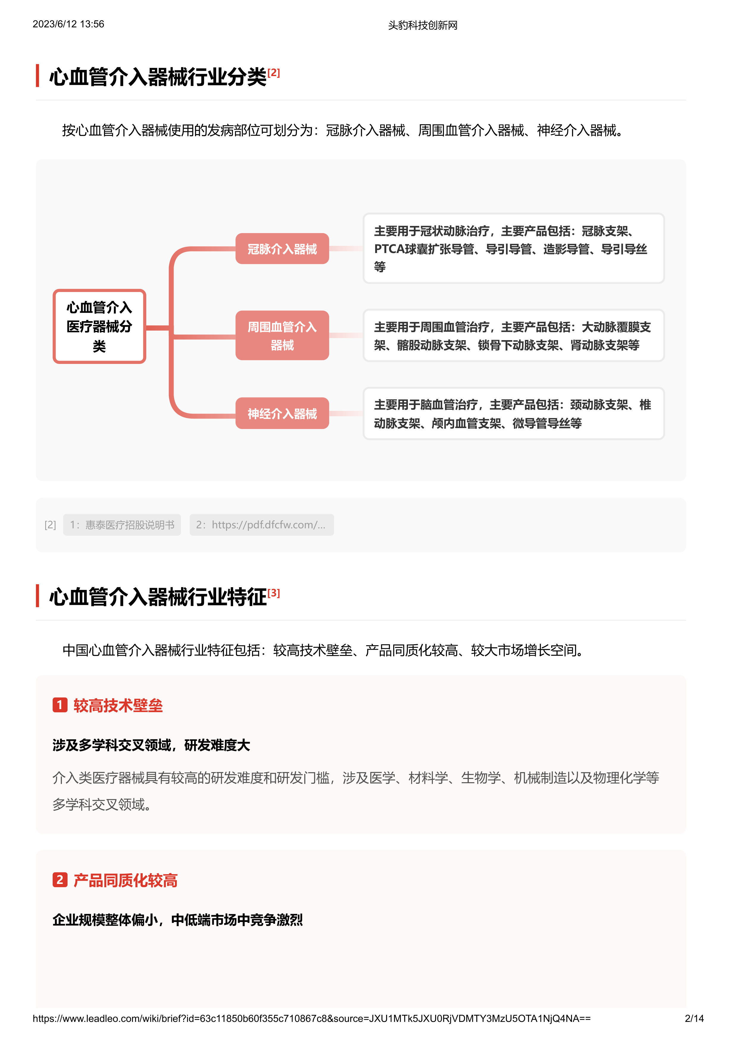 报告对心血管介入器械进行了分类,按发病部位分为冠脉介入器械、周围血管介入器械和神经介入器械。冠脉介入器械市场相对成熟,而周围血管和神经介入器械市场仍处于发展初期,具有较大的增长潜力。