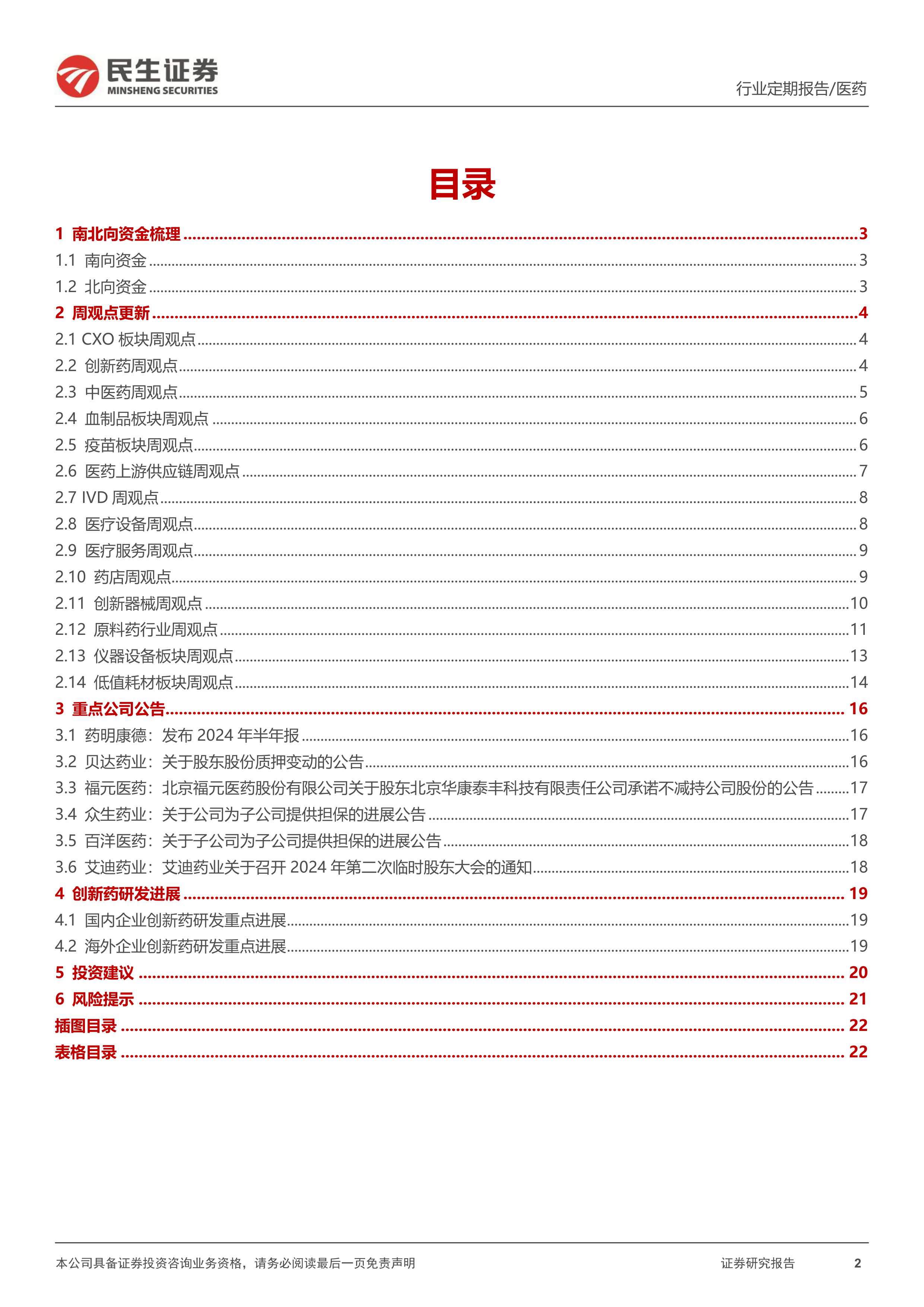 风险提示:集采压力大于预期风险;产品研发进度不及预期风险;竞争加剧风险;政策监管环境变化风险;药物研发服务市场需求下降的风险。