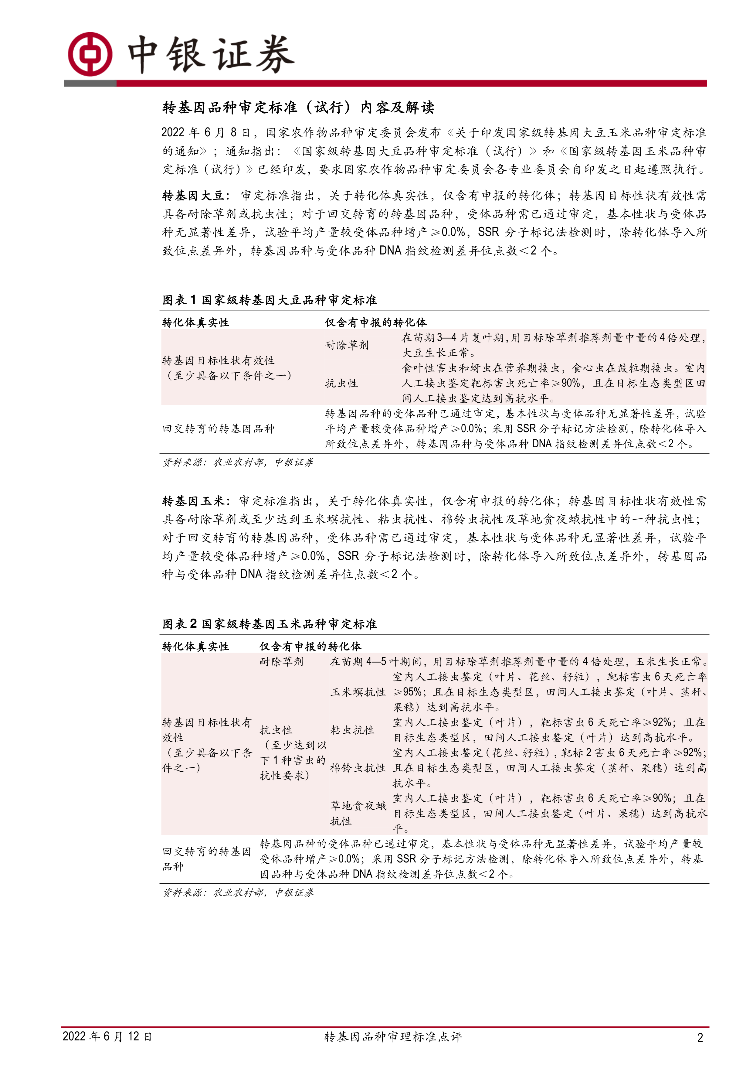 2022年6月8日,国家农作物品种审定委员会发布《关于印发国家级转基因大豆玉米品种审定标准的通知》;通知指出:《国家级转基因大豆品种审定标准(试行)》和《国家级转基因玉米品种审定标准(试行)》已经印发,要求国家农作物品种审定委员会各专业委员会自印发之日起遵照执行。