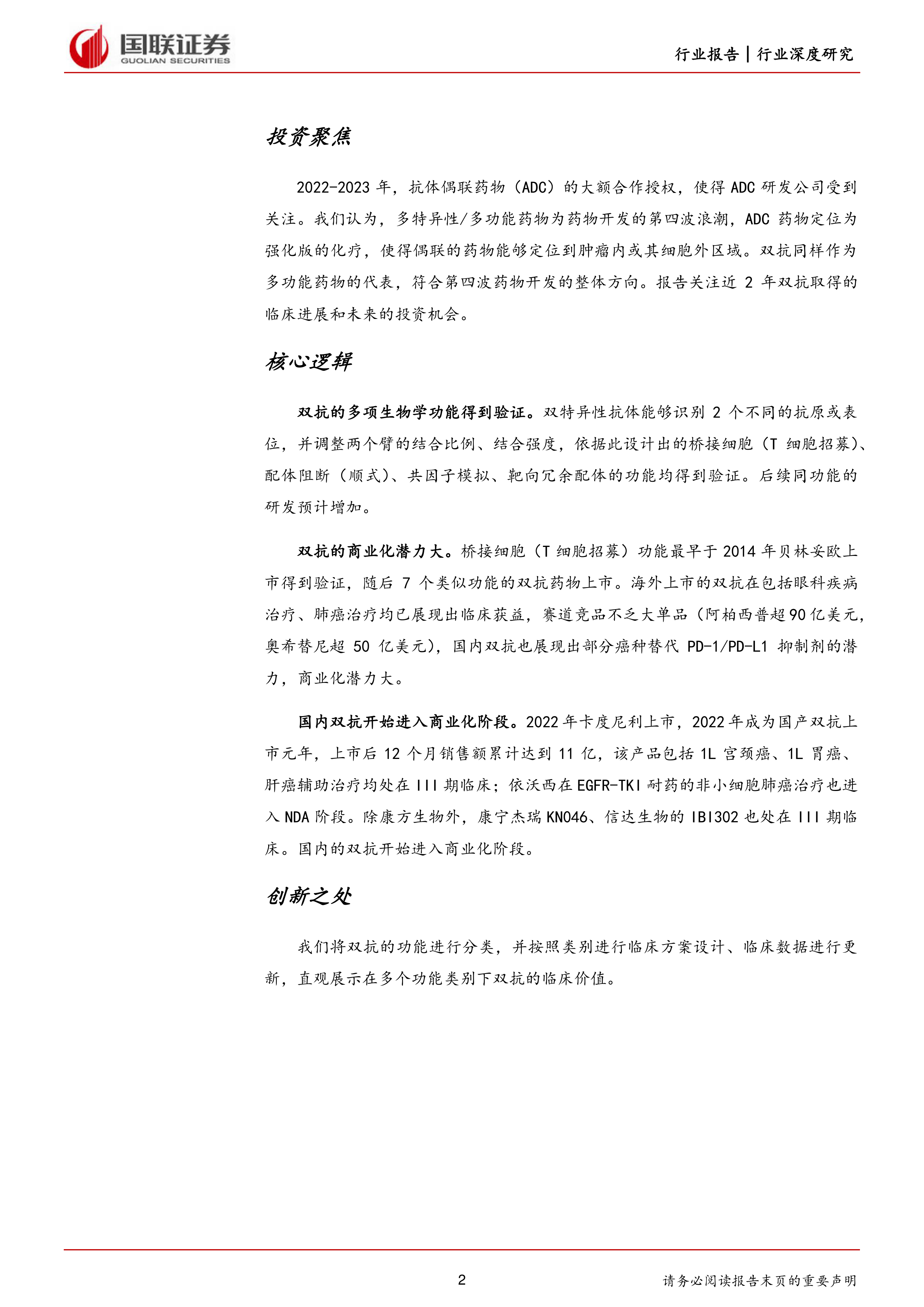 本报告详细分析了双抗的临床价值、商业化潜力以及国内外市场研发情况,并对部分重点公司进行了投资建议。