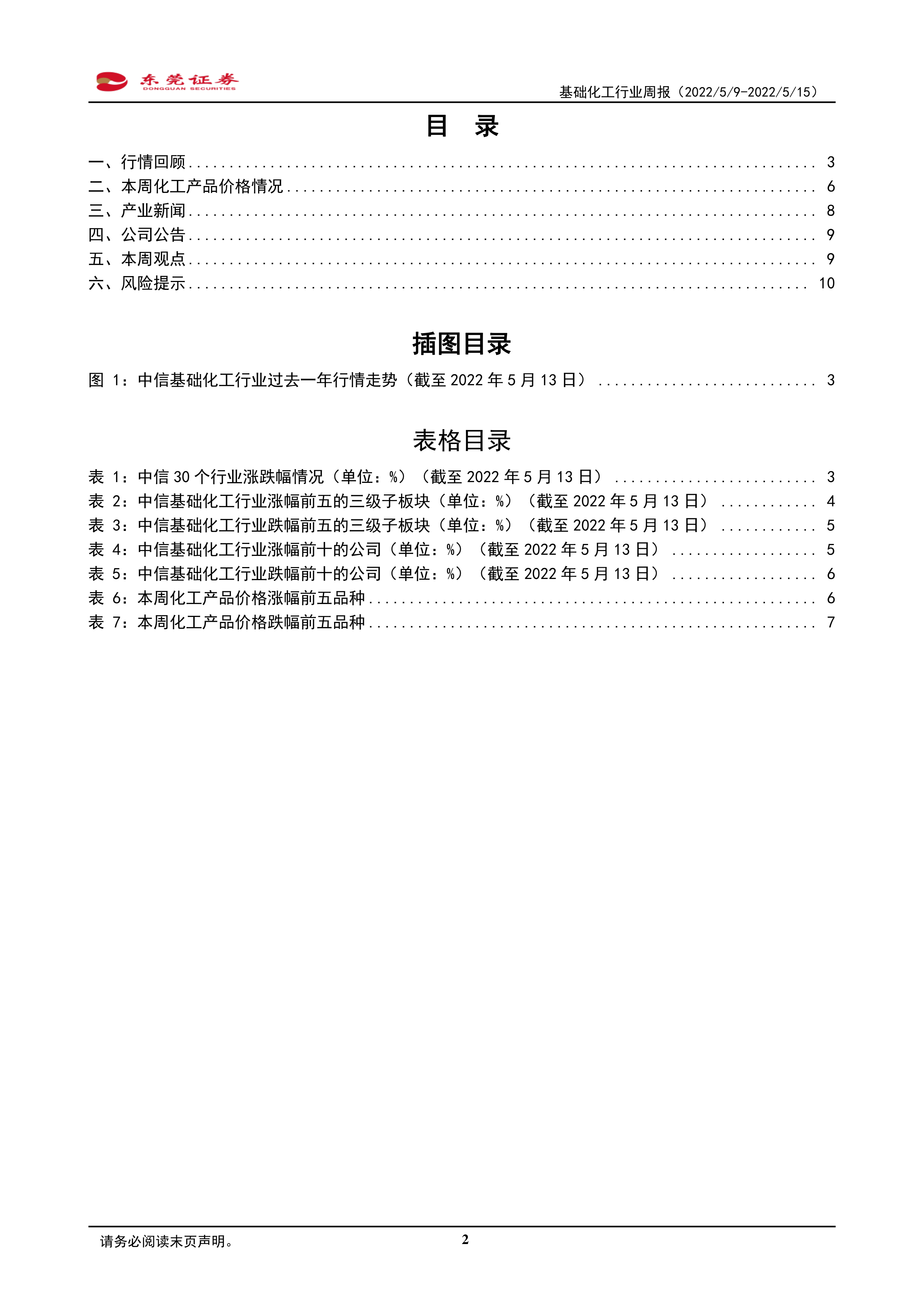 风险提示:俄乌冲突不确定性对能源价格、国际粮食价格造成的波动风险;油价剧烈波动导致化工产品价差收窄风险;保供稳价背景下,国内部分化肥出口受限的风险;宏观经济若承压导致化工产品下游需求不及预期风险;部分化工产品新增产能过快释放导致供需格局恶化风险;行业竞争加剧风险;房地产、基建需求不及预期风险;天灾人祸等不可抗力事件的发生。