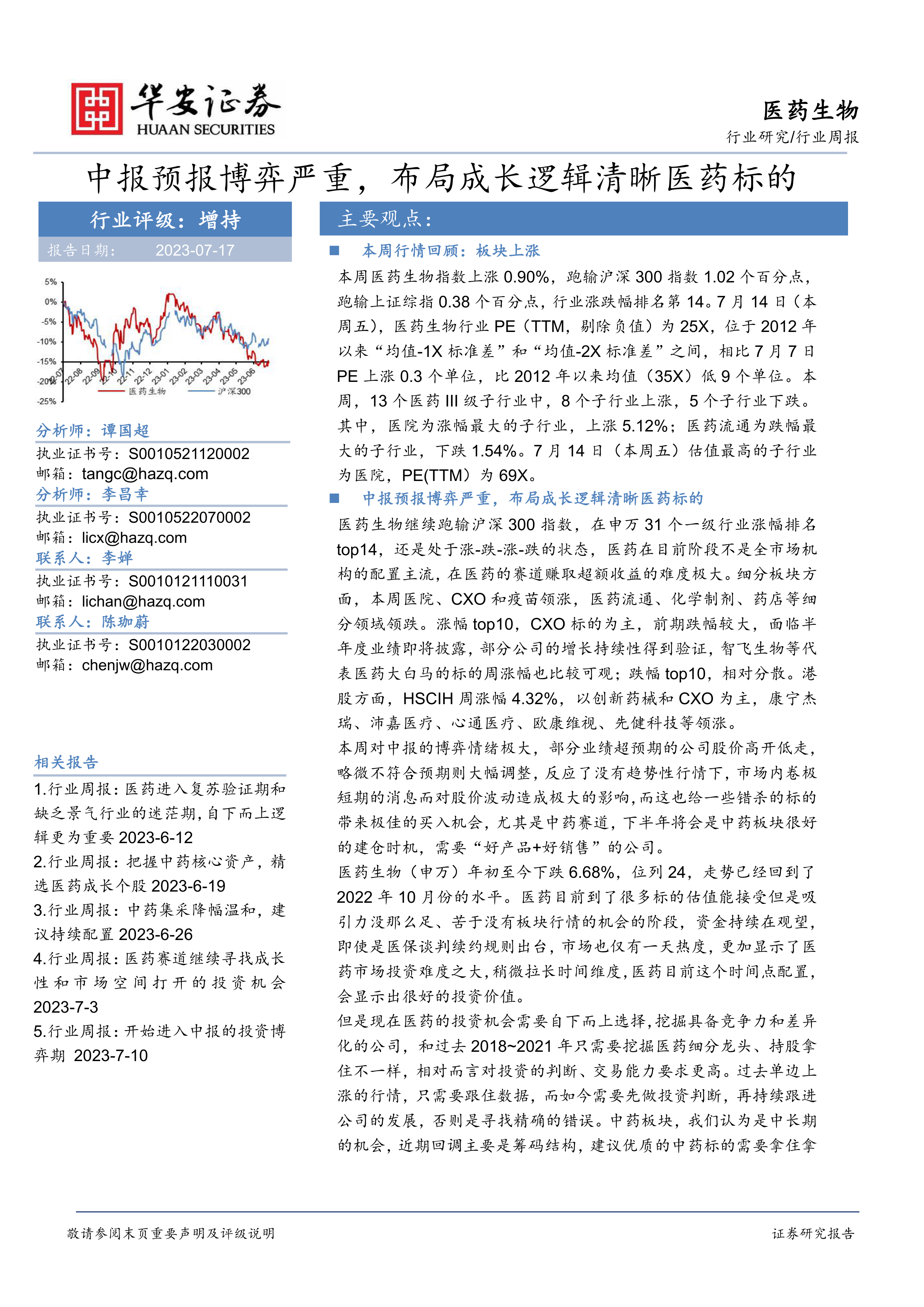 医药生物行业周报:中报预报博弈严重,布局成长逻辑清晰医药标的