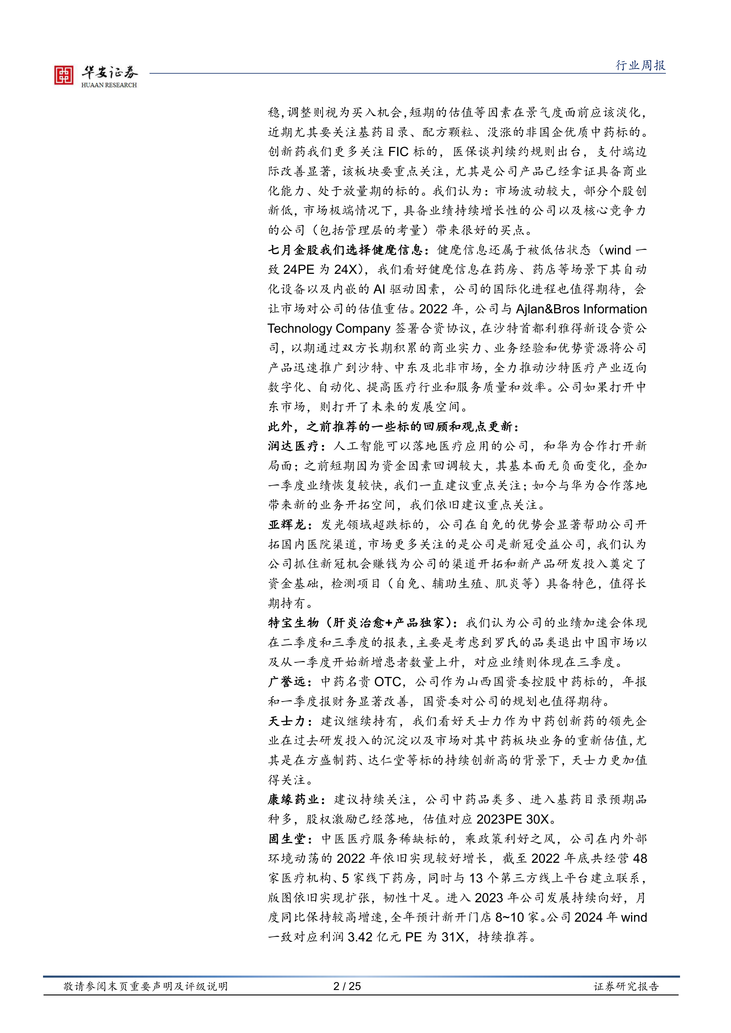新股系列专题报告:《多肽原料龙头湃肽生物(A06405.SZ)新股梳理》;公司点评医思健康(2138.HK):《收入增速亮眼,期待费用管控成果》;公司深度华领医药-B(2552.HK):《调糖稳态治愈糖尿病潜力,华堂宁放量光明已至》;公司点评康缘药业(600557):《上半年业绩亮眼,二季度注射剂业务增长稳定》;公司深度美年健康(002044):《体检大数据叠加AI技术,赋能健康生态平台》;公司深度康恩贝(600572):《国资入主,混改完成,主业聚焦中药大健康》;公司深度海创药业(688302):《氘代平台快速创新,布局PROTAC下一蓝海》。