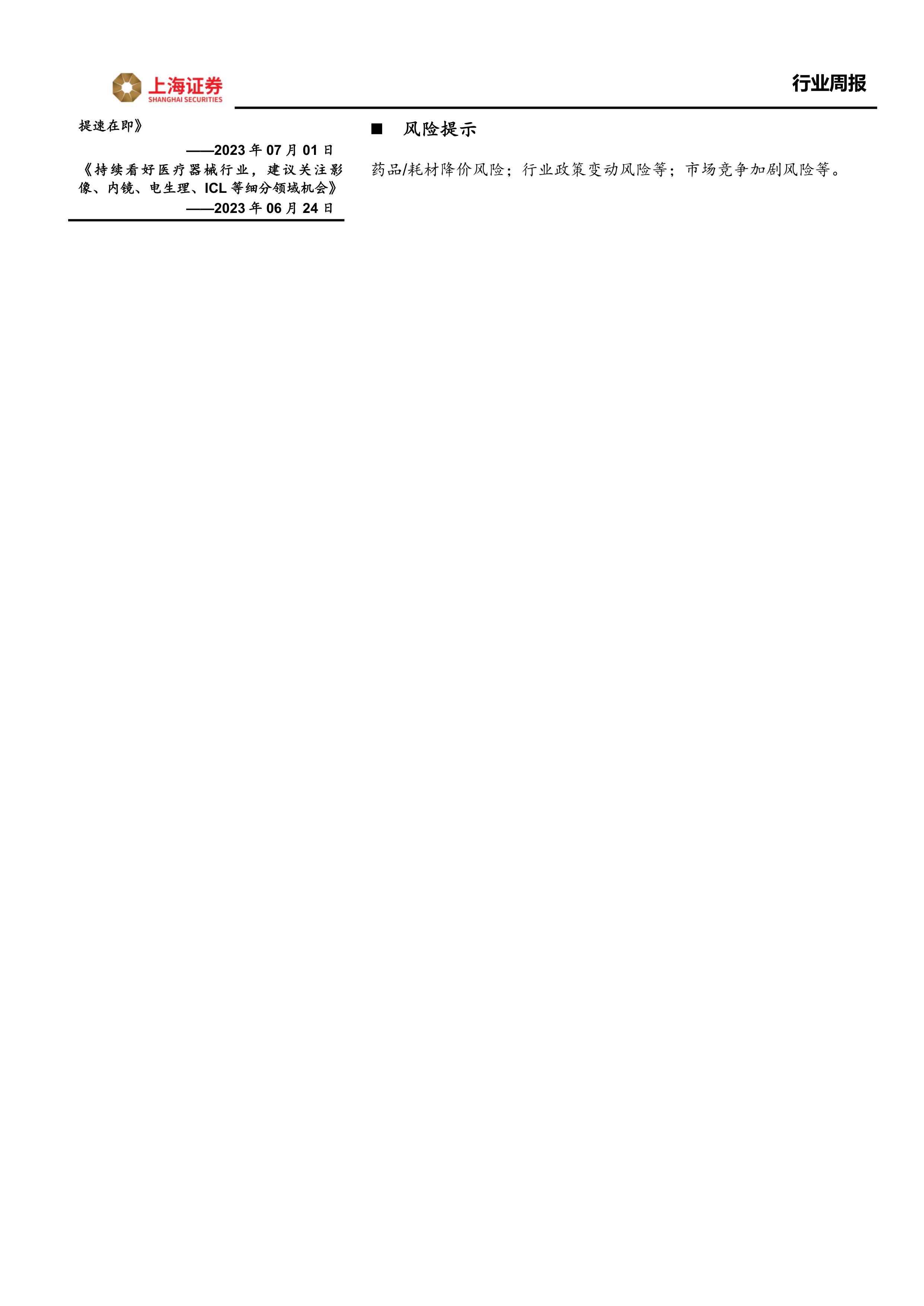 药品/耗材降价风险;行业政策变动风险等;市场竞争加剧风险等